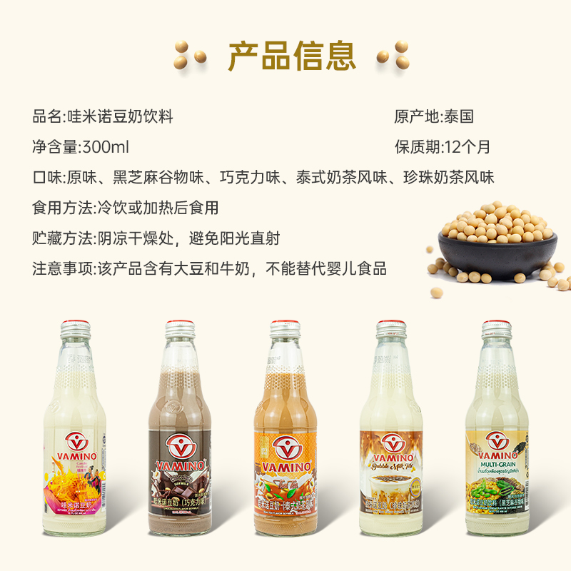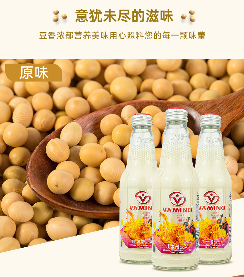 泰国进口Vamino哇米诺豆奶原味豆奶300ml*6瓶植物蛋白营养早餐奶