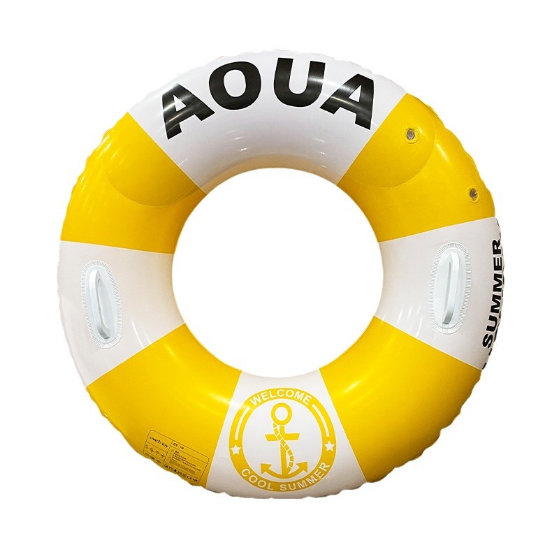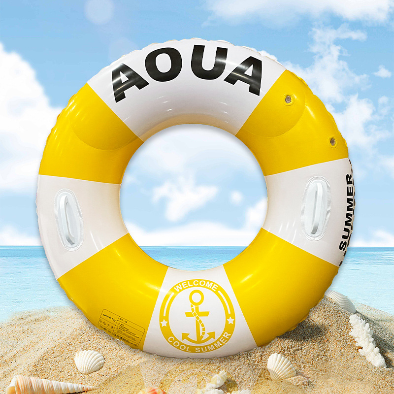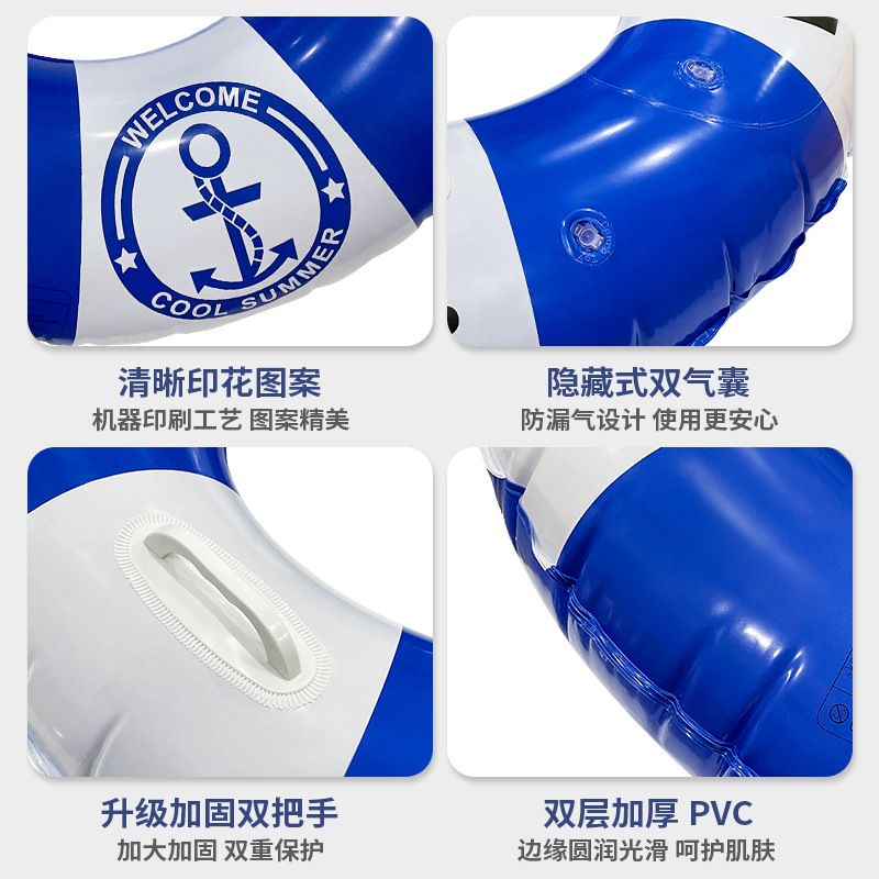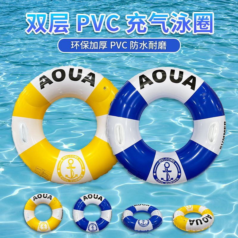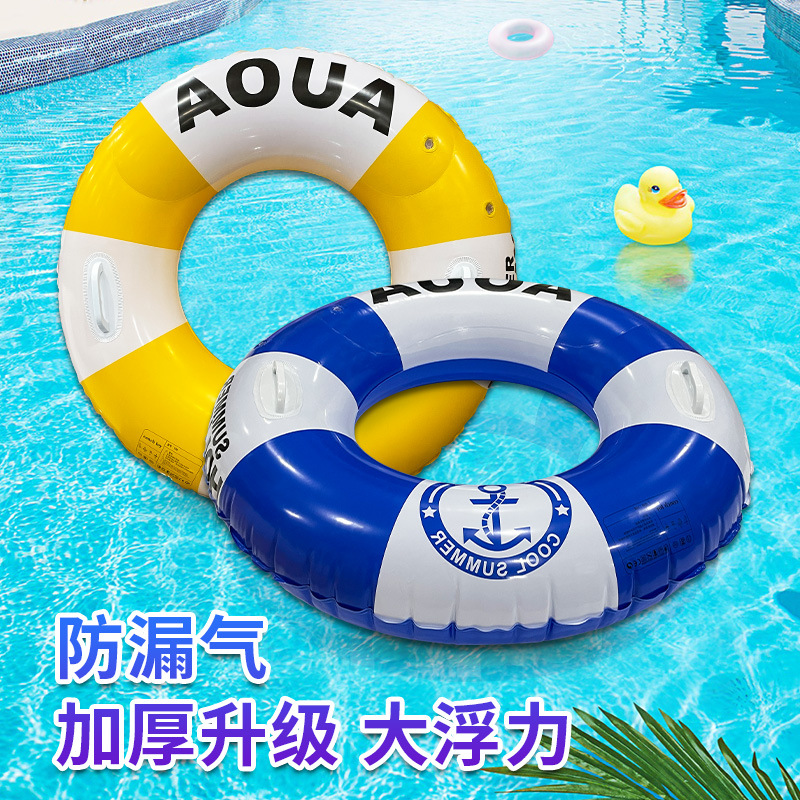 跨境新款双气囊条纹泳圈成人腋下救生圈户外水上带把手游泳圈批发