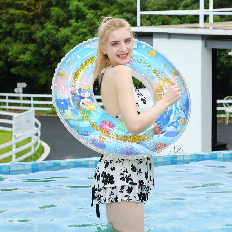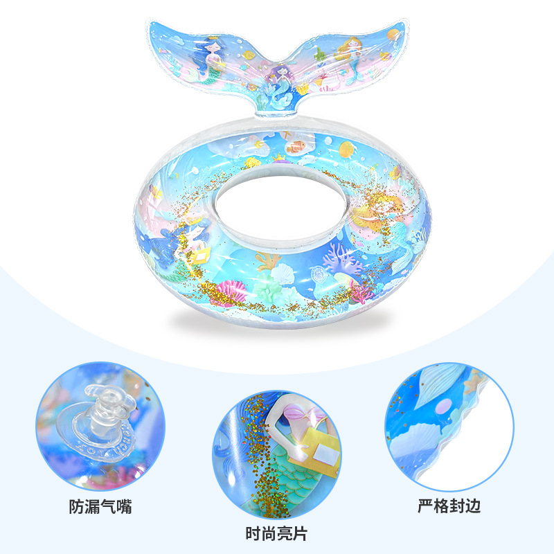 ins网红新款泳池初学者亮片海洋美人鱼充气浮圈PVC加厚儿童游泳圈