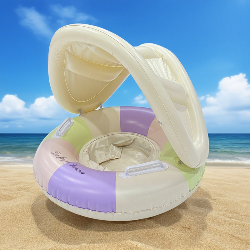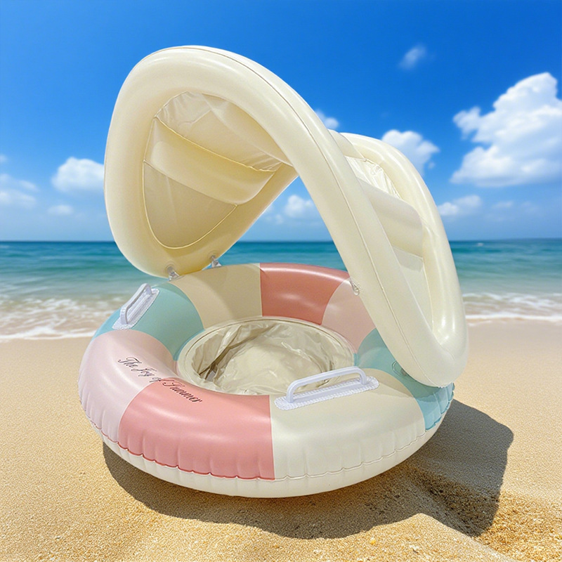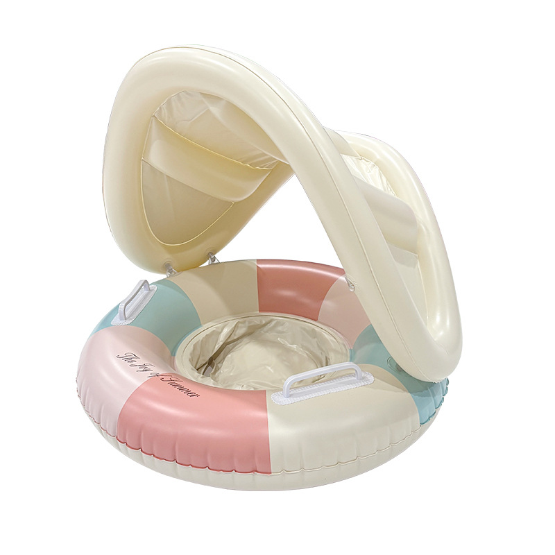 ins网红户外水上环保加厚遮阳篷充气裤兜圈带把手条纹儿童游泳圈