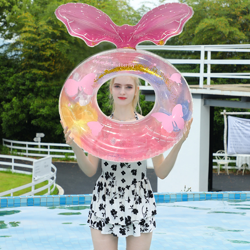 夏季新款环保加厚卡通亮片花瓣亲子游泳充气浮圈pvc水上儿童泳圈