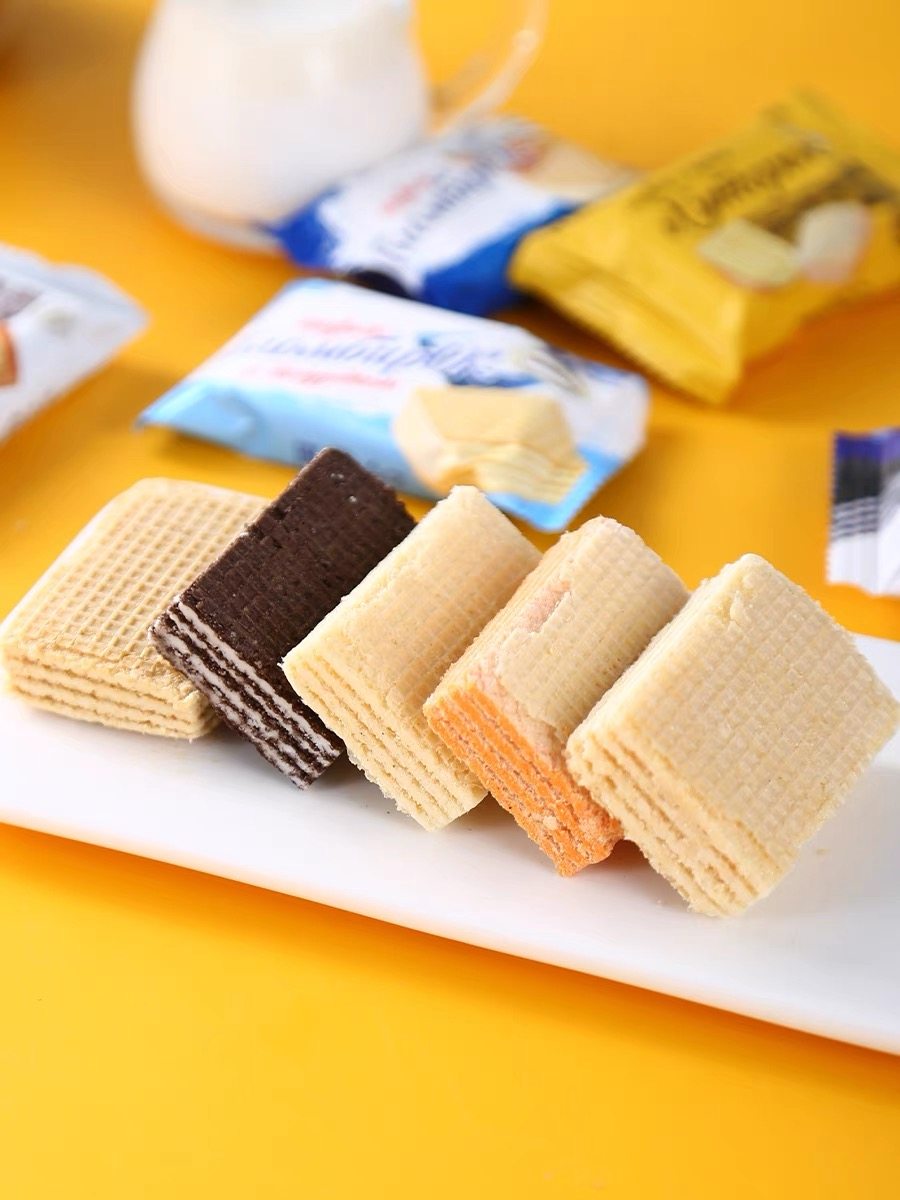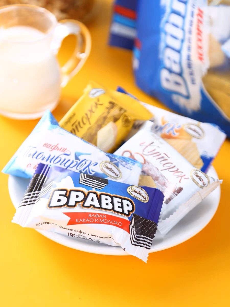 俄罗斯进口阿孔特冰激凌巧克力奶酪味威化饼干追剧休闲网红小零食