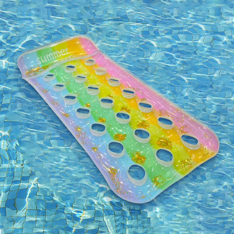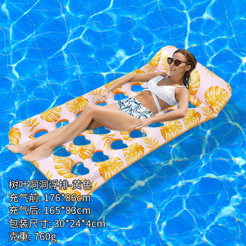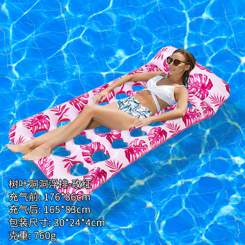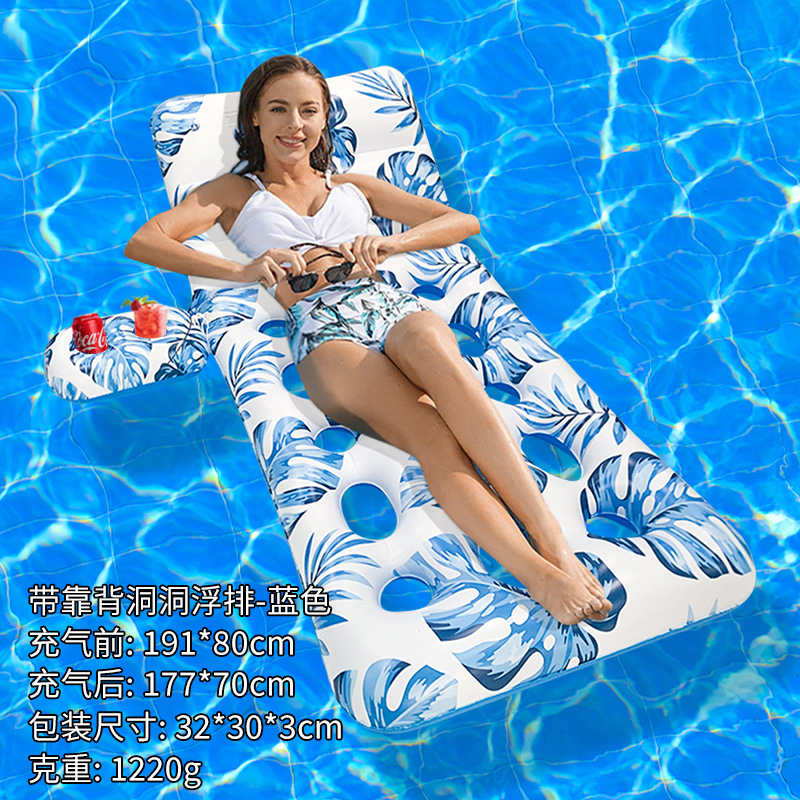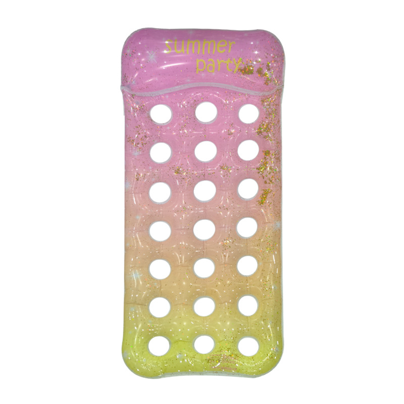 环保PVC加厚亮片圆孔渐变夹网成人充气躺椅户外水上护颈充气浮排
