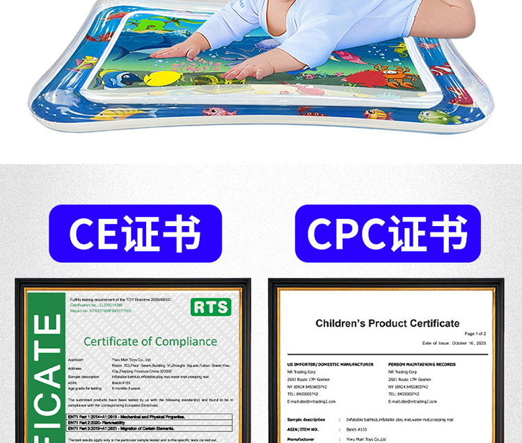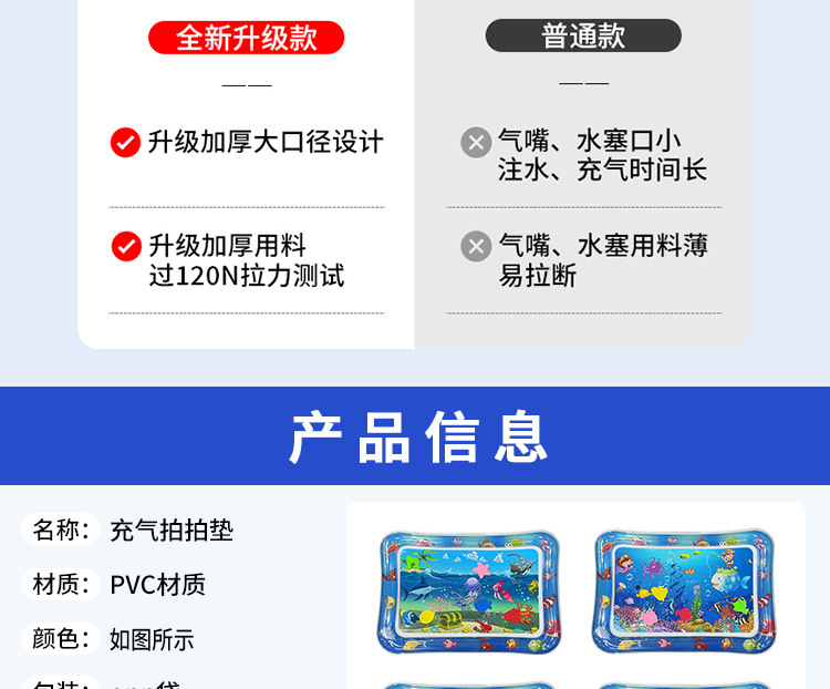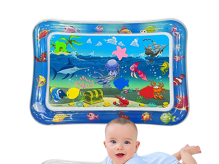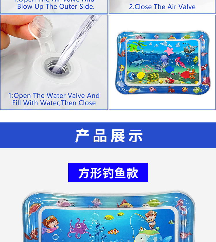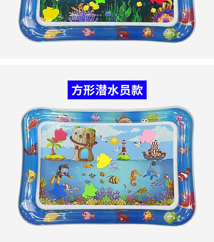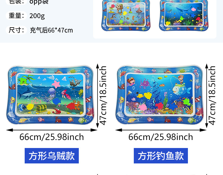 亚马逊夏季新品卡通乌贼婴儿充气拍拍水垫方形环保加厚儿童拍拍垫