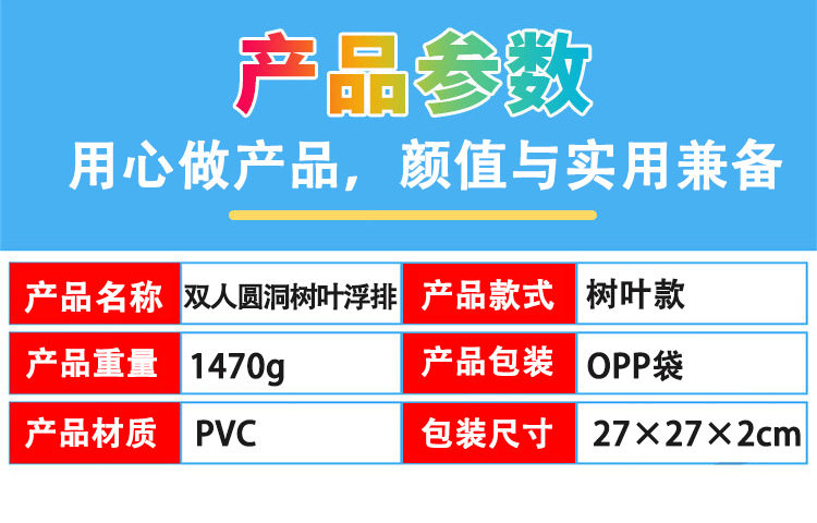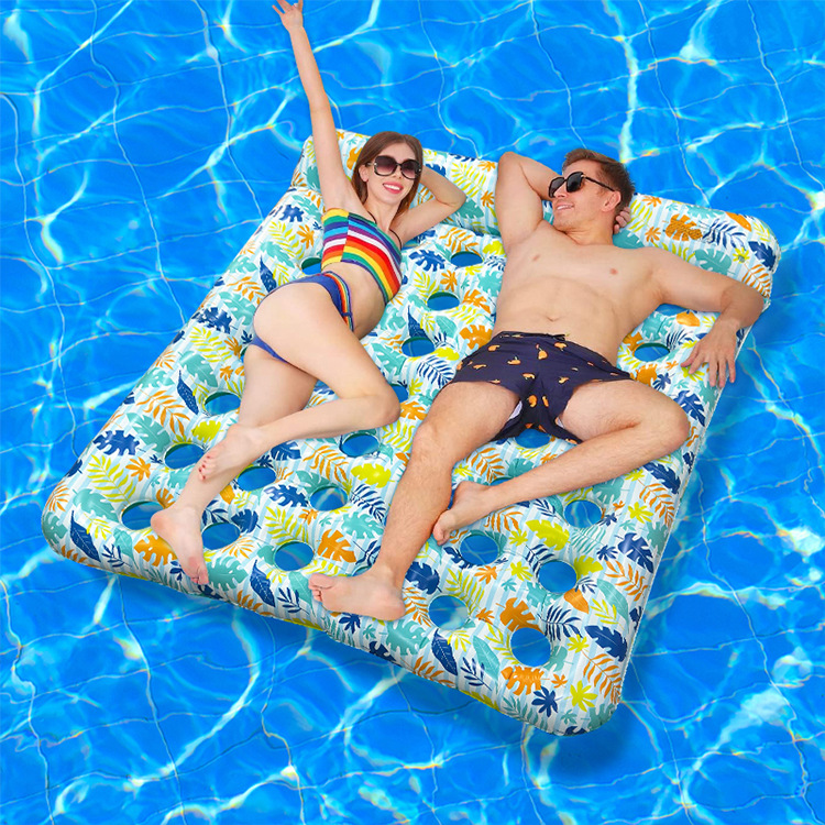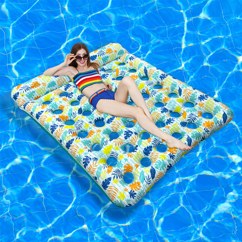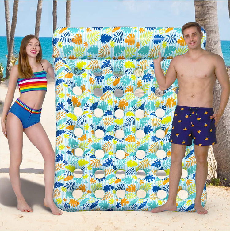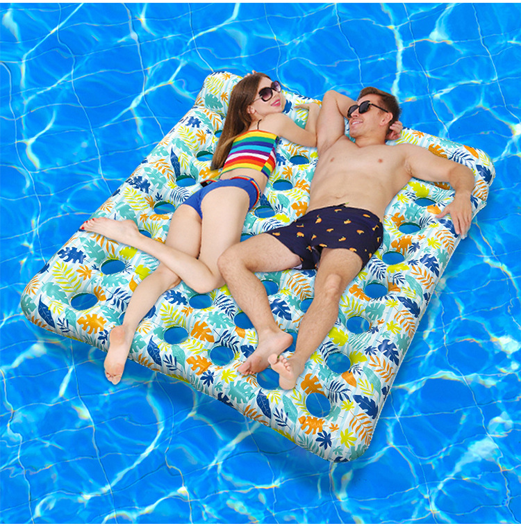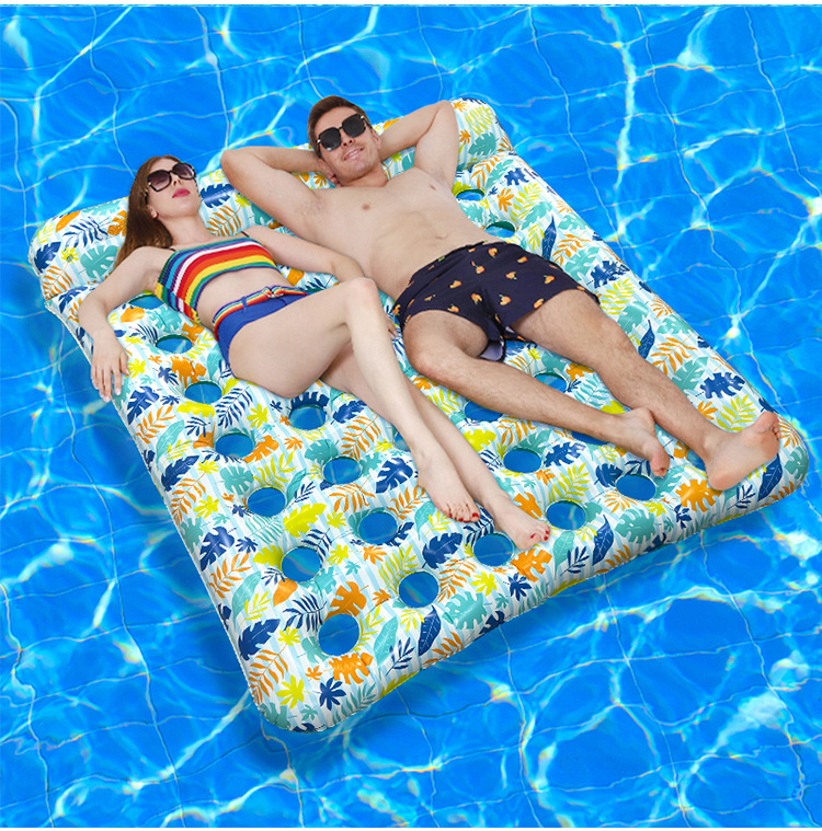 跨境夏季戏水圆孔树叶水上充气漂浮床带靠枕环保加厚PVC双人浮排