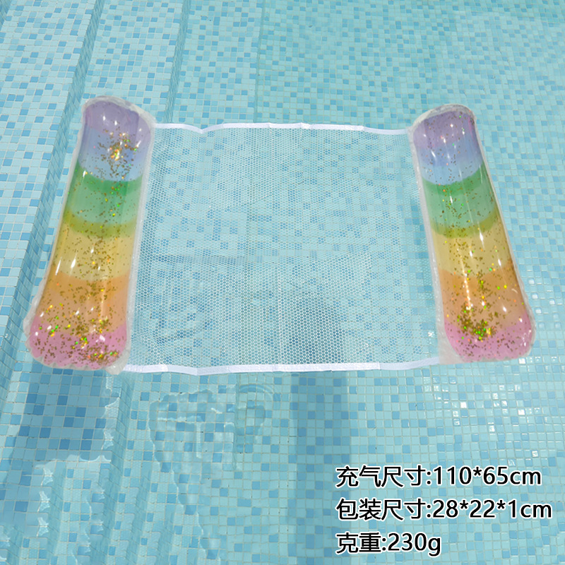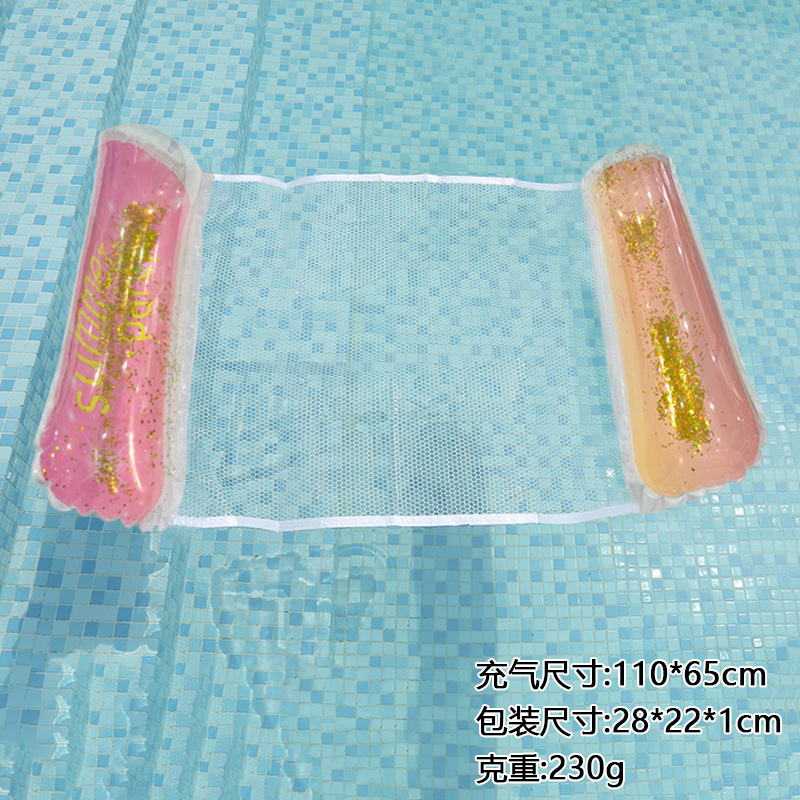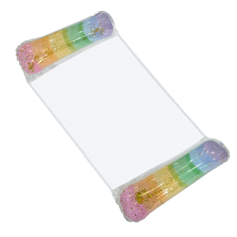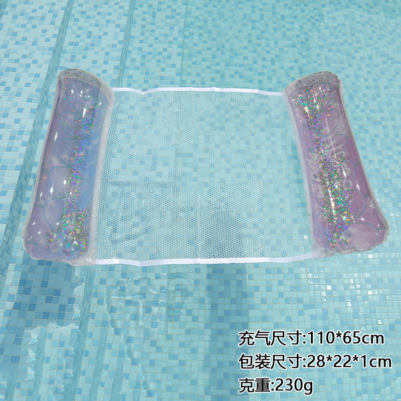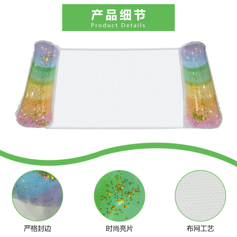 环保PVC新款亮片渐变夹网水上吊床充气躺椅户外成人靠背充气浮排