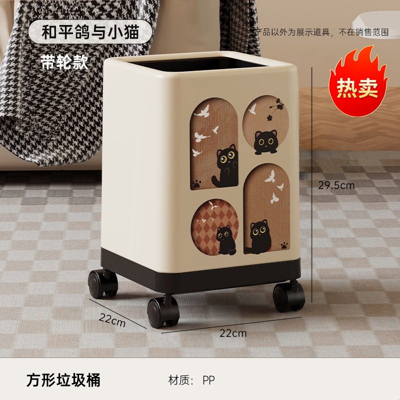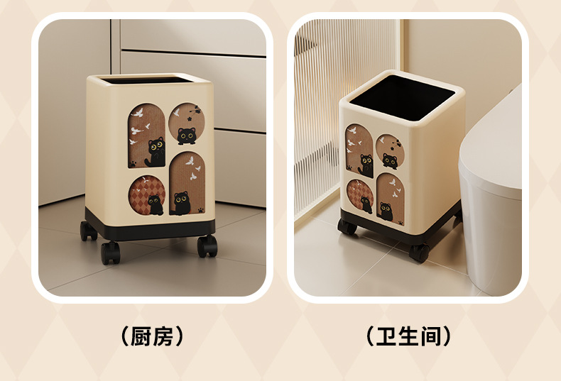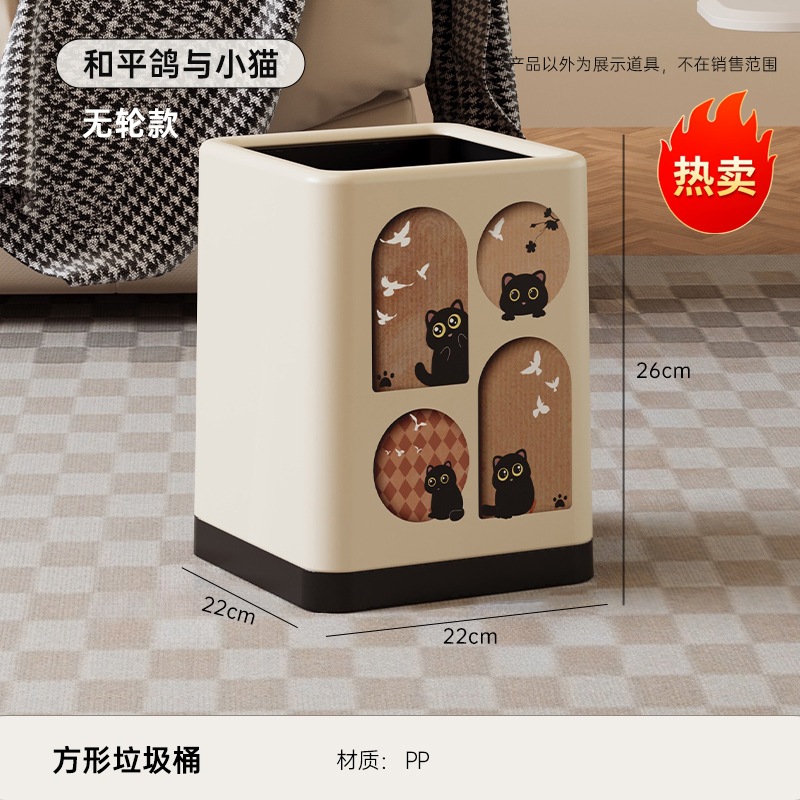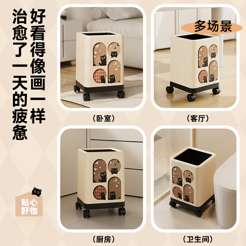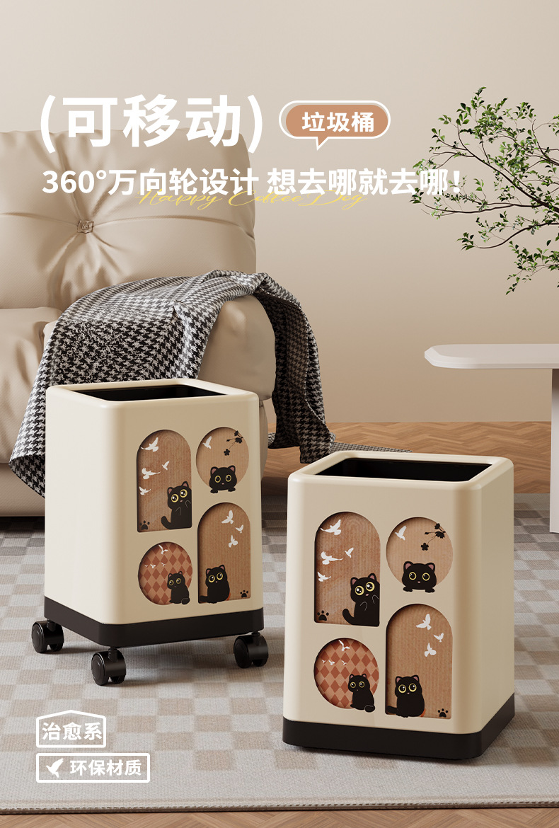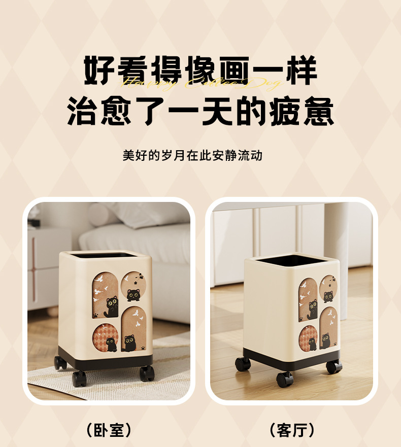 复古垃圾桶家用大号大容量卧室客厅带轮纸篓高颜值创意猫咪垃圾筒