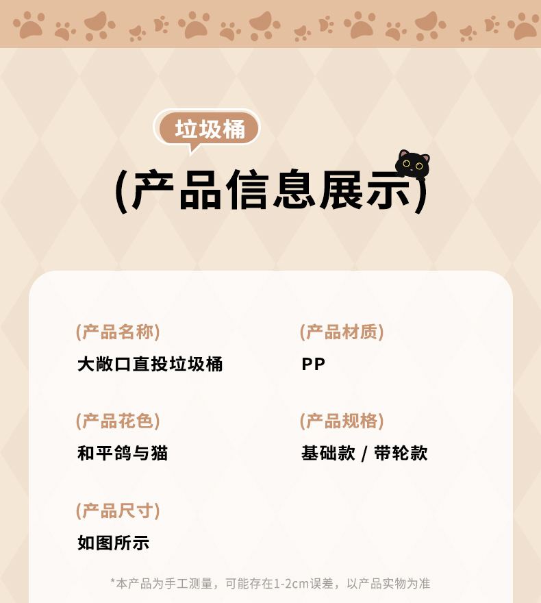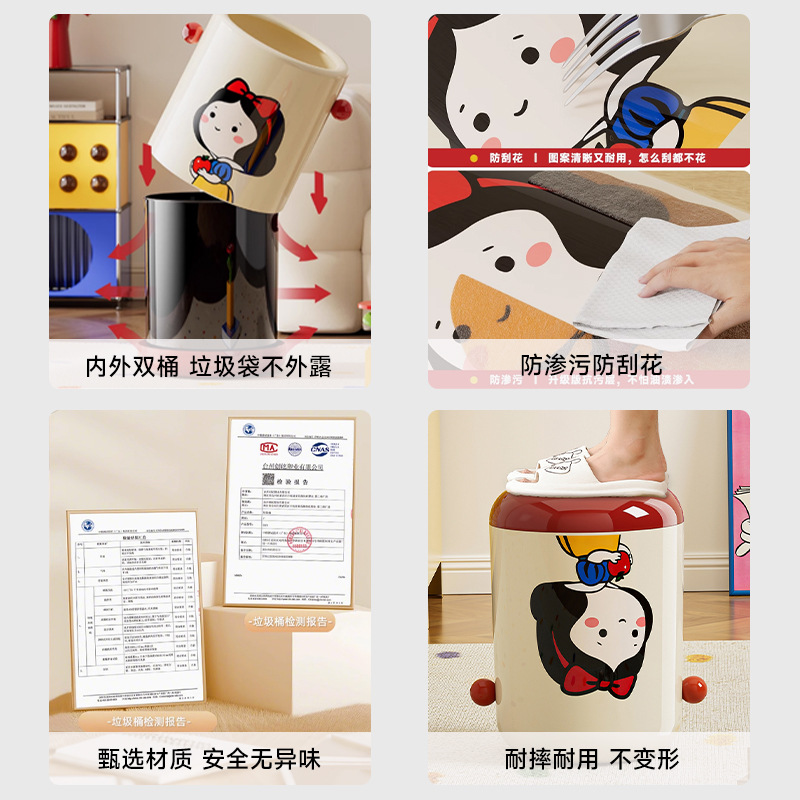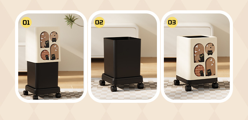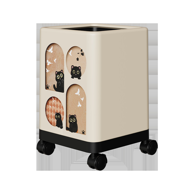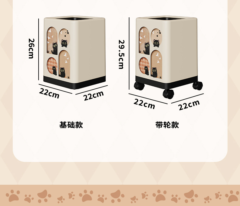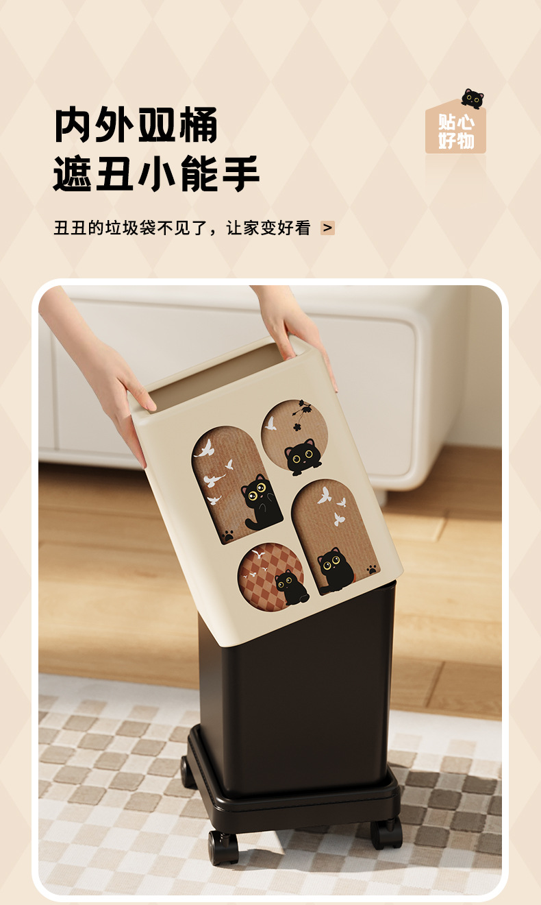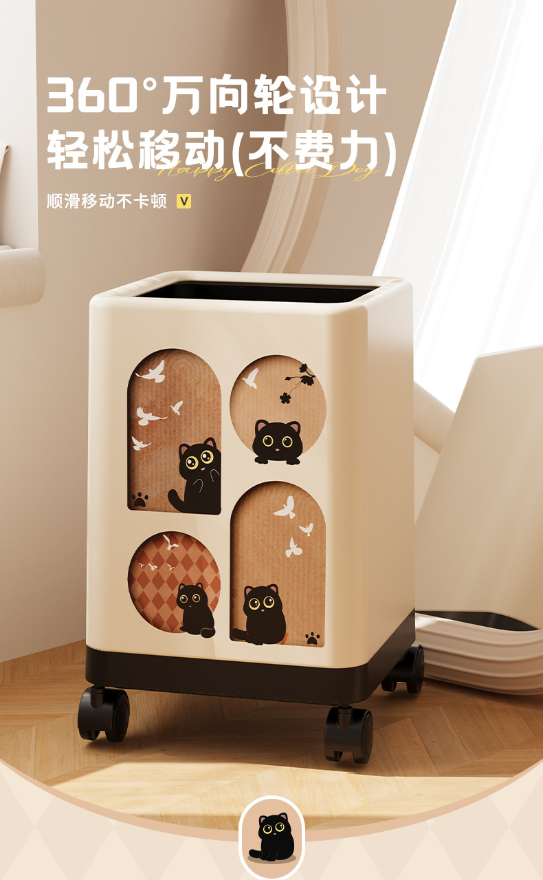 复古垃圾桶家用大号大容量卧室客厅带轮纸篓高颜值创意猫咪垃圾筒