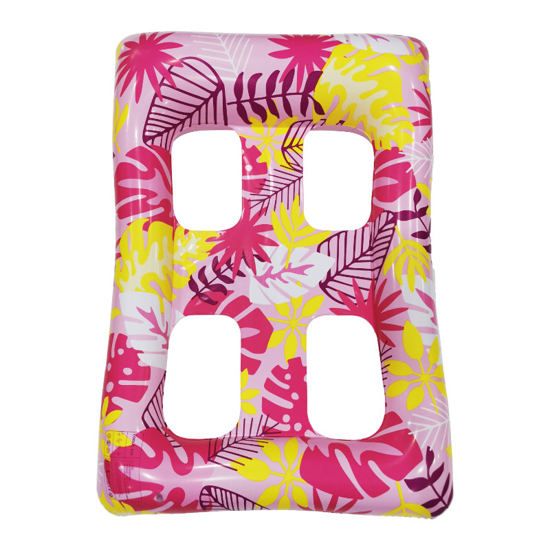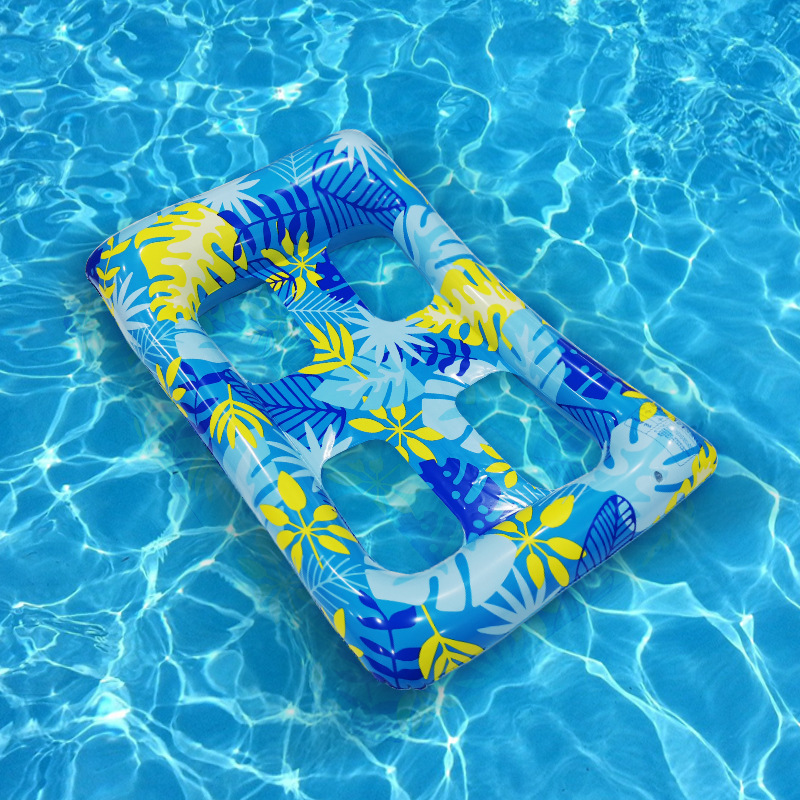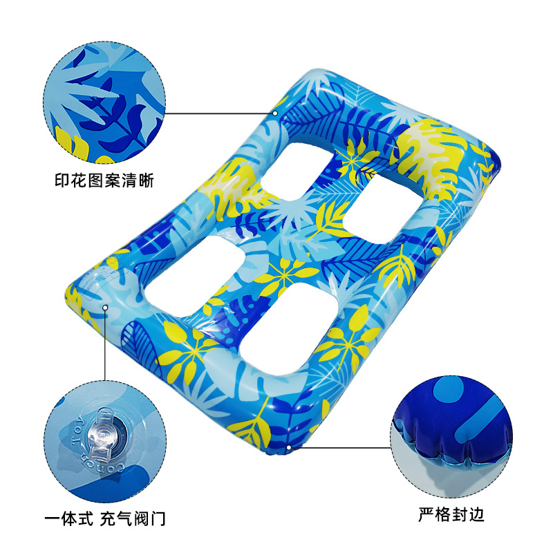 新款环保PVC树叶田字形充气带靠背躺椅户外泳池游乐水上充气浮排