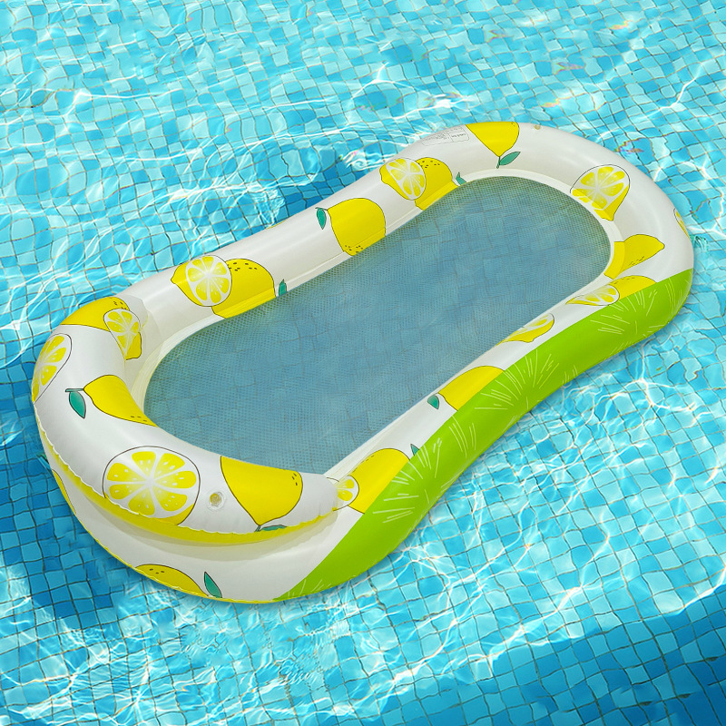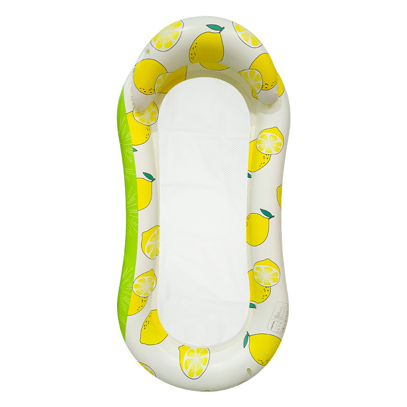 跨境户外泳池漂浮水上躺椅PVC新款8字形柠檬印花夹网成人充气浮排