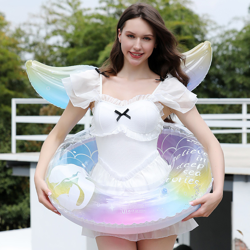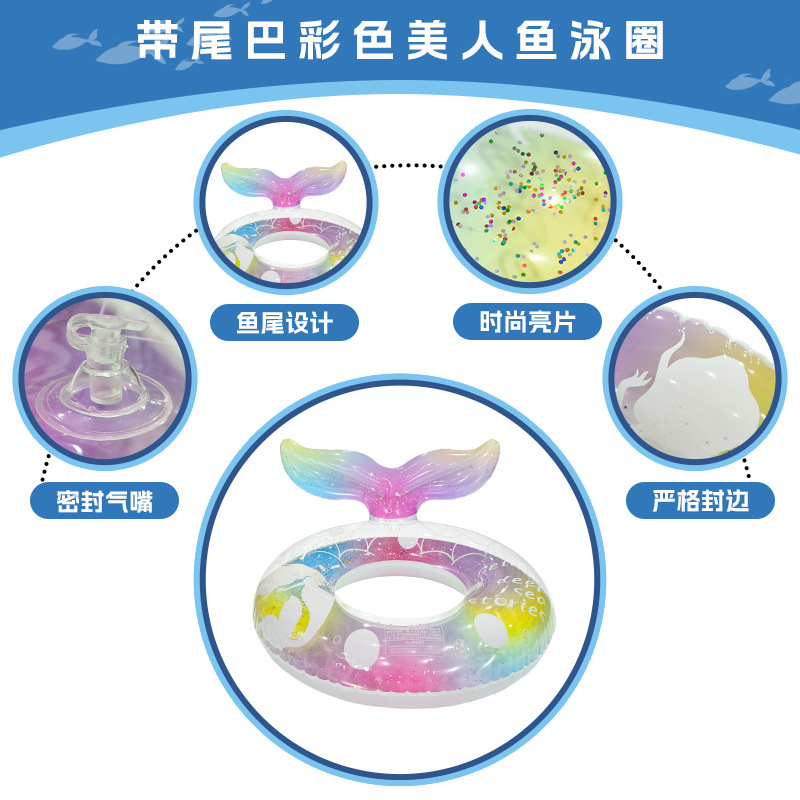 卡通加厚PVC彩色亮片户外戏水充气腋下圈6-10岁儿童美人鱼游泳圈