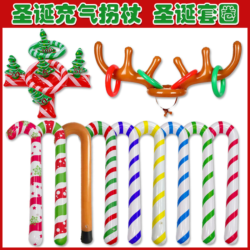 工厂现货圣诞充气鹿角头套圈麋鹿角头箍投掷套圈派对玩具充气拐杖