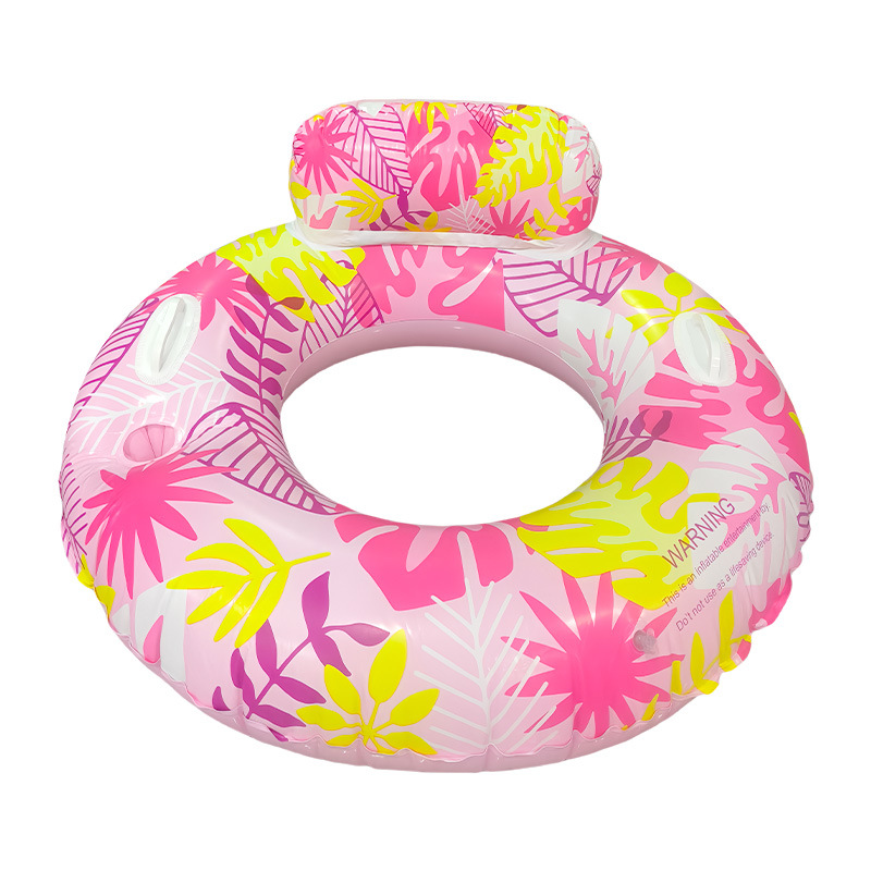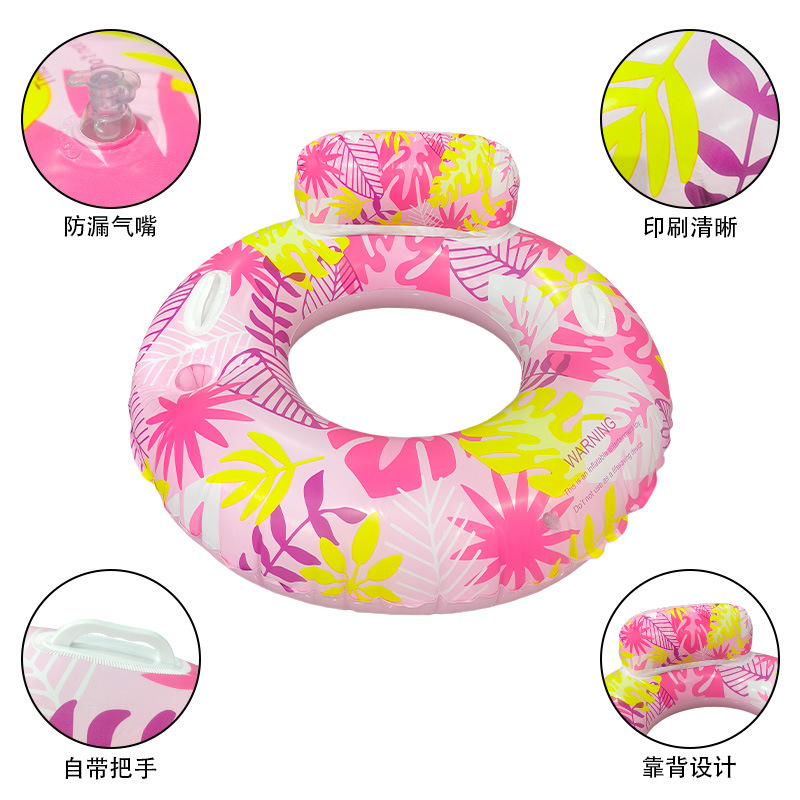 户外泳池漂浮成人腋下圈新款水上防侧翻靠背带把手树叶双色游泳圈