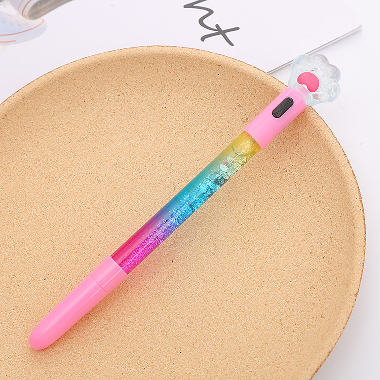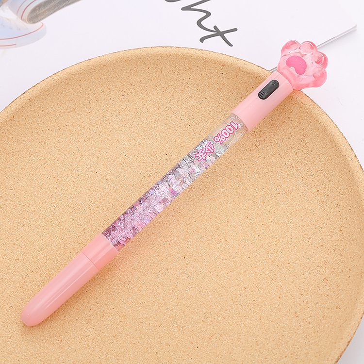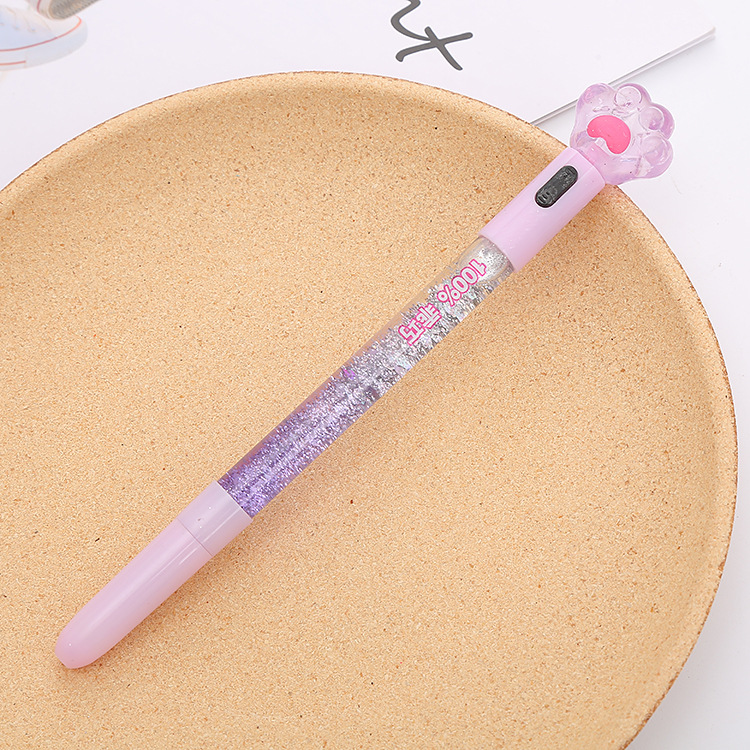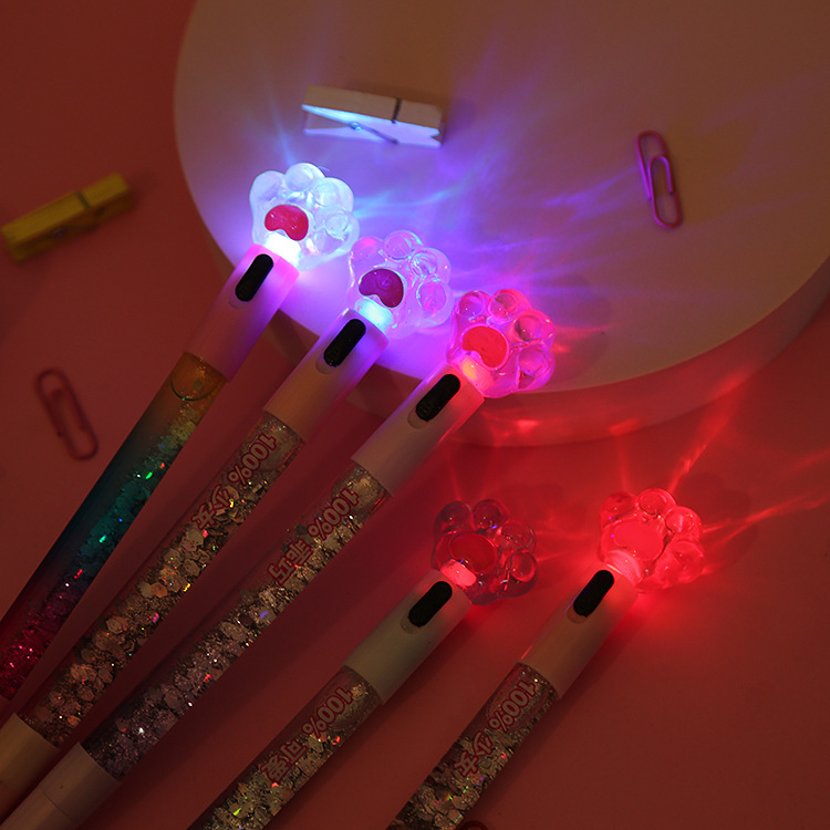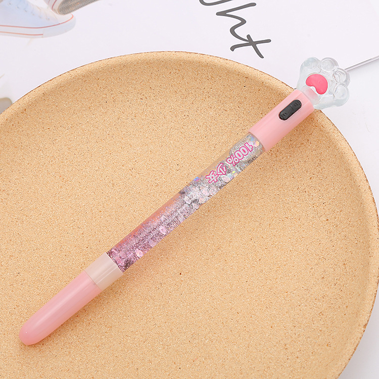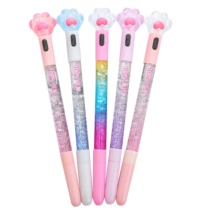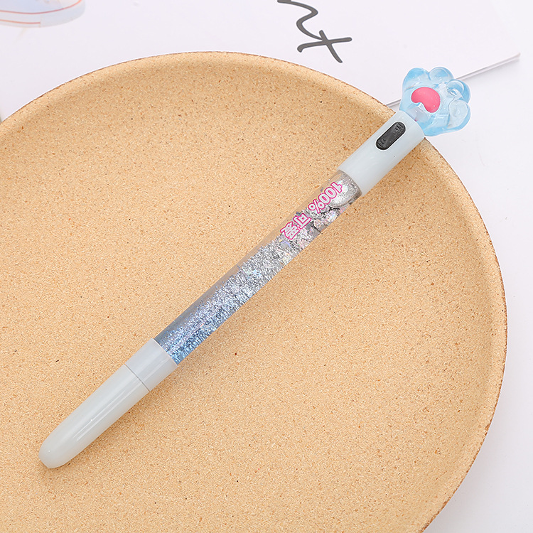水晶熊掌带灯入油流沙中性笔学生亮片仙女棒水笔创意办公文具批发