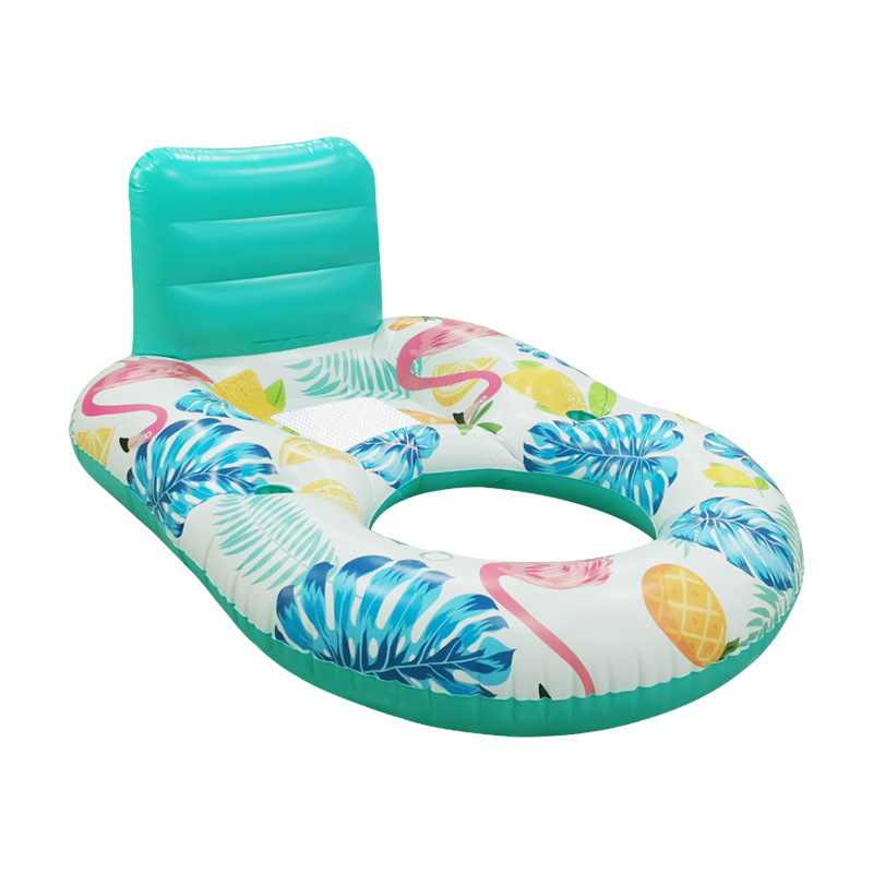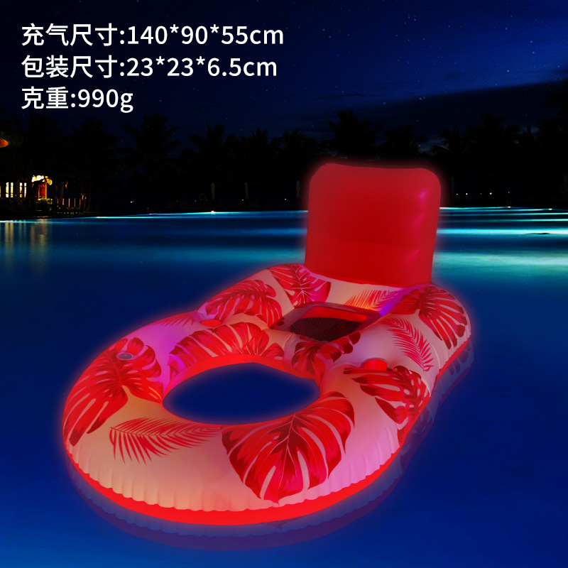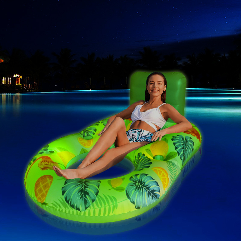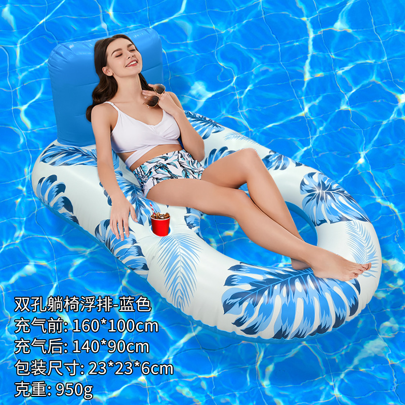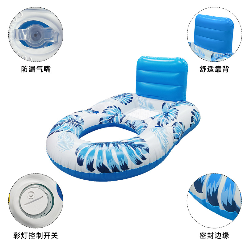 环保PVC户外成人泳池漂浮水上充气躺椅双孔带灯靠背布网充气浮排