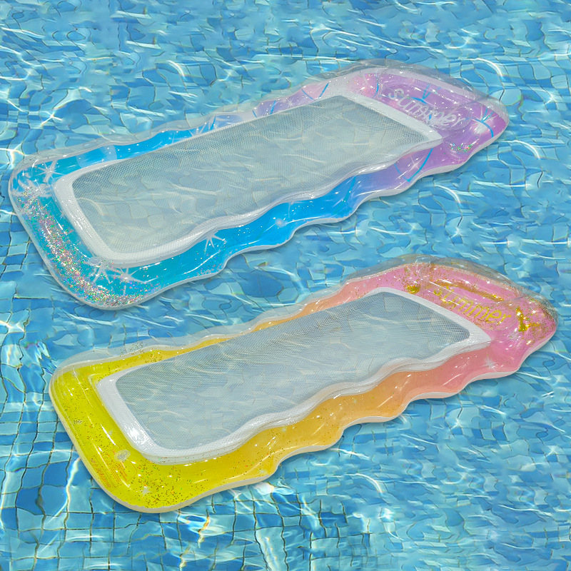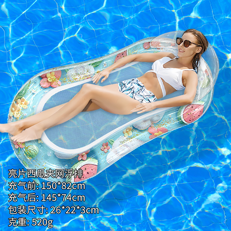 跨境户外水上游乐单人护颈靠枕充气躺椅PVC加厚亮片波浪充气浮排