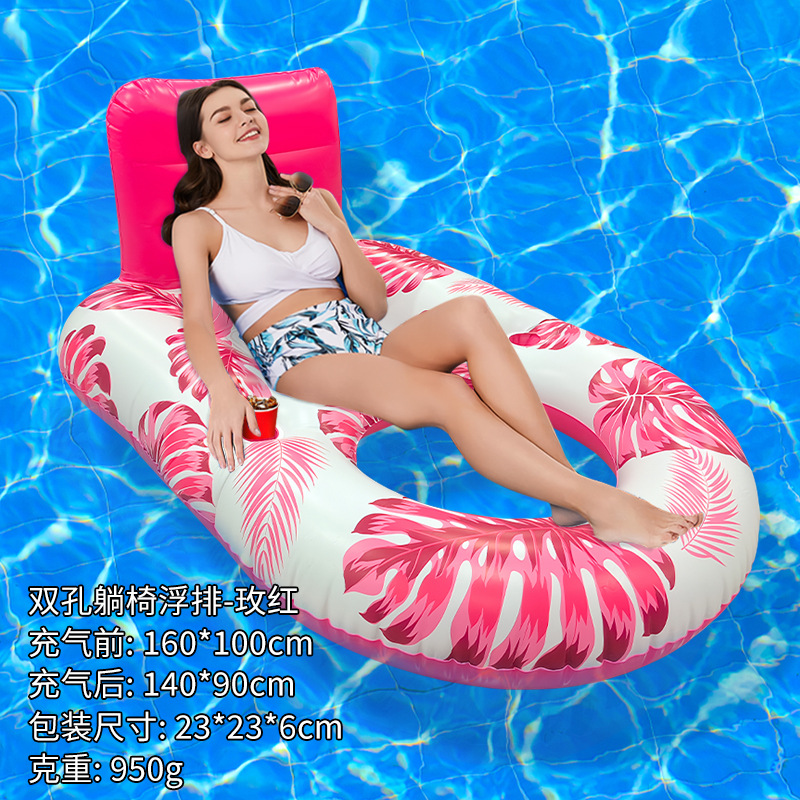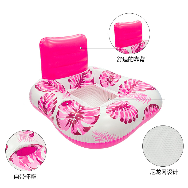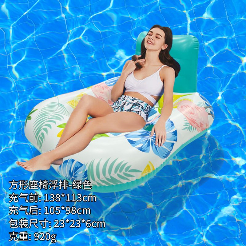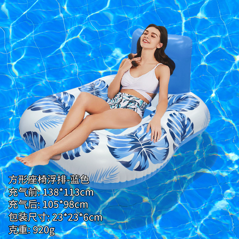 户外玩水单人方形花纹靠背躺椅浮床戏水玩具环保PVC充气座椅浮排