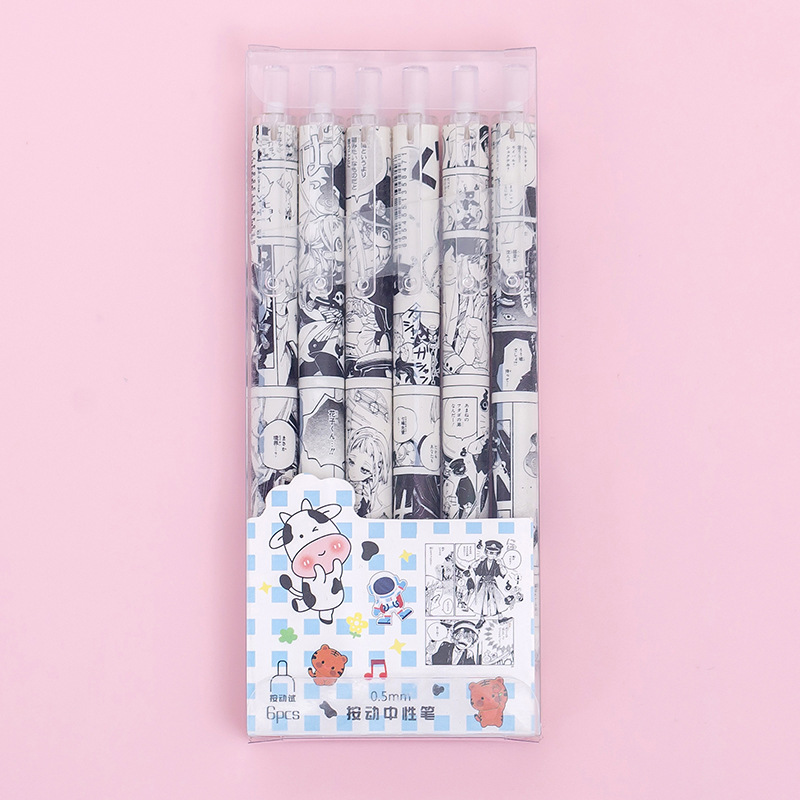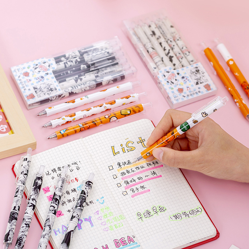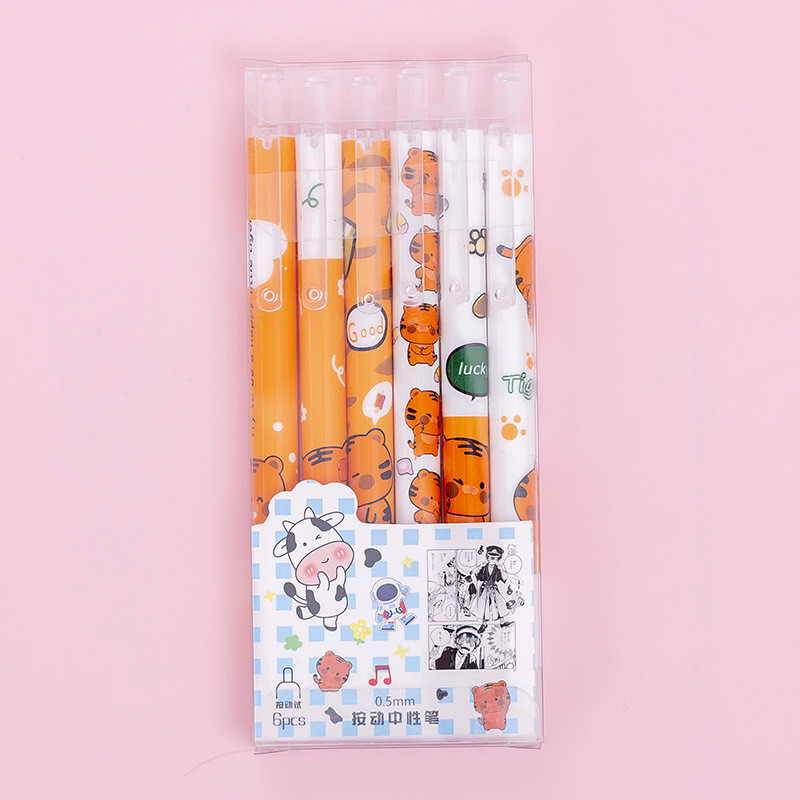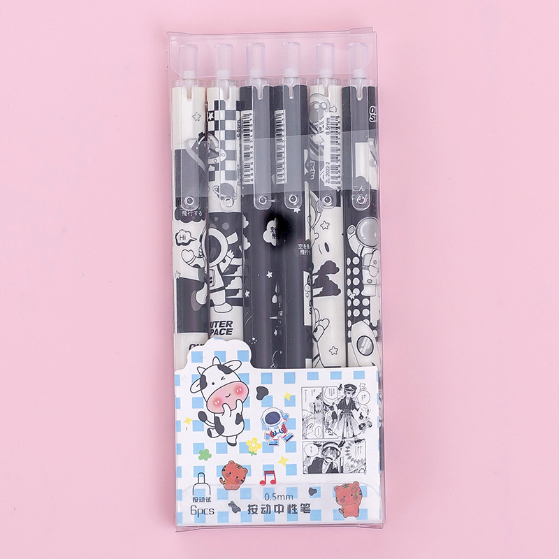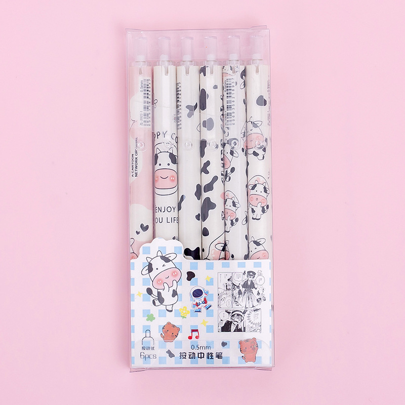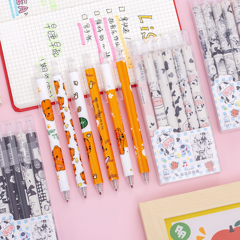 pvc盒装6支按动胖虎太空奶牛中性笔黑学生奖品礼品文具中性笔批发