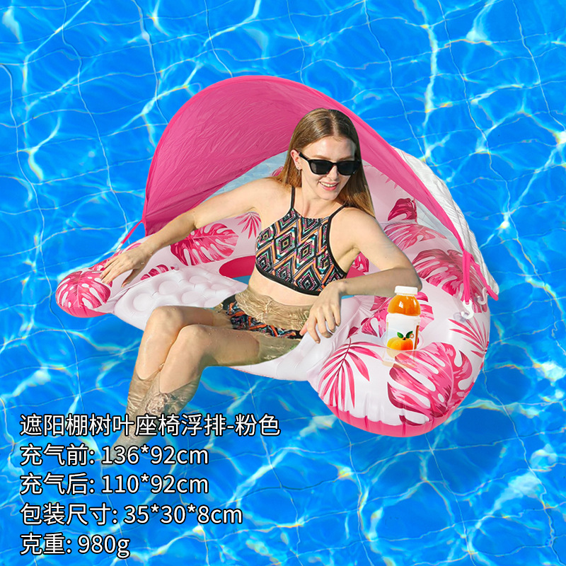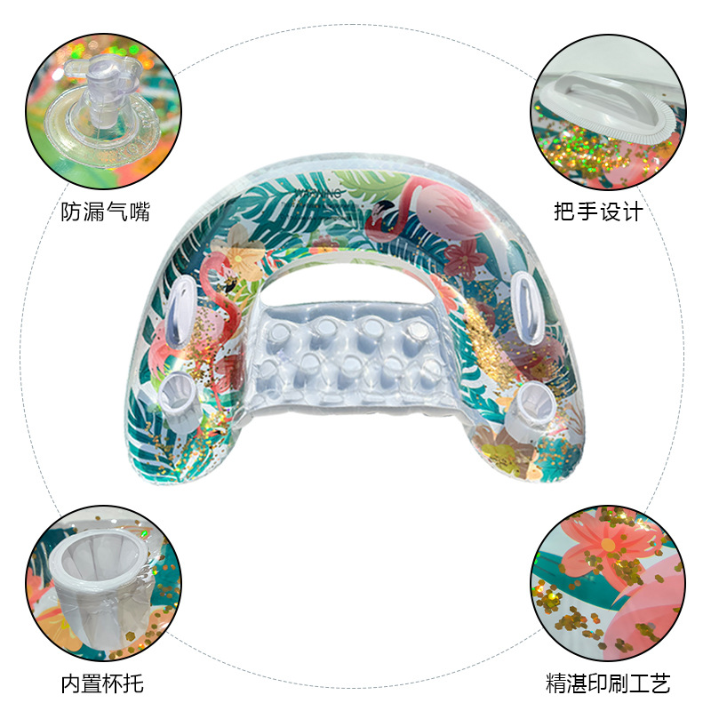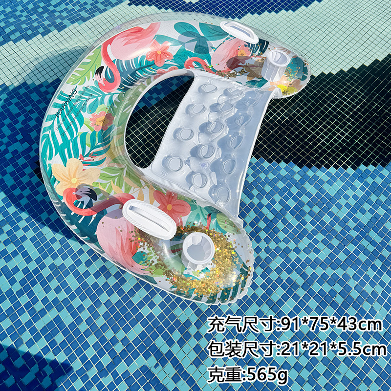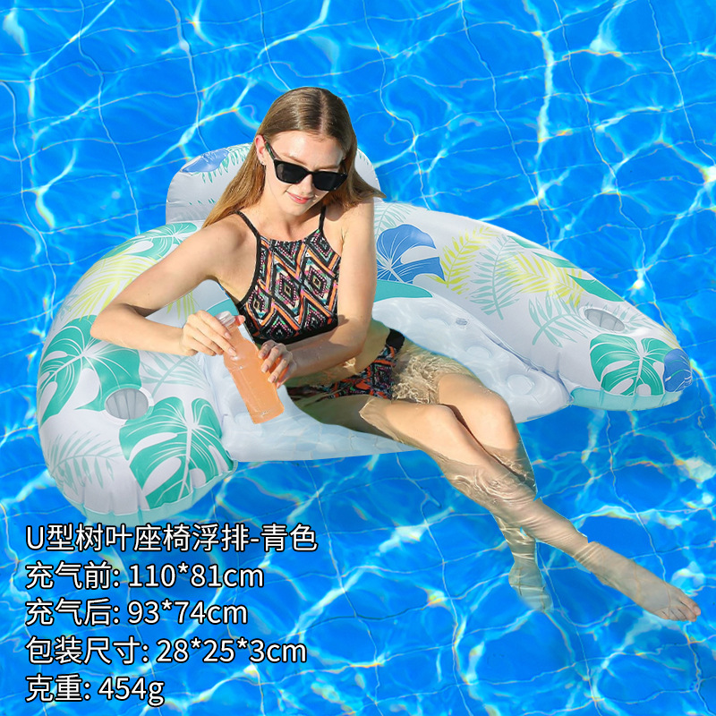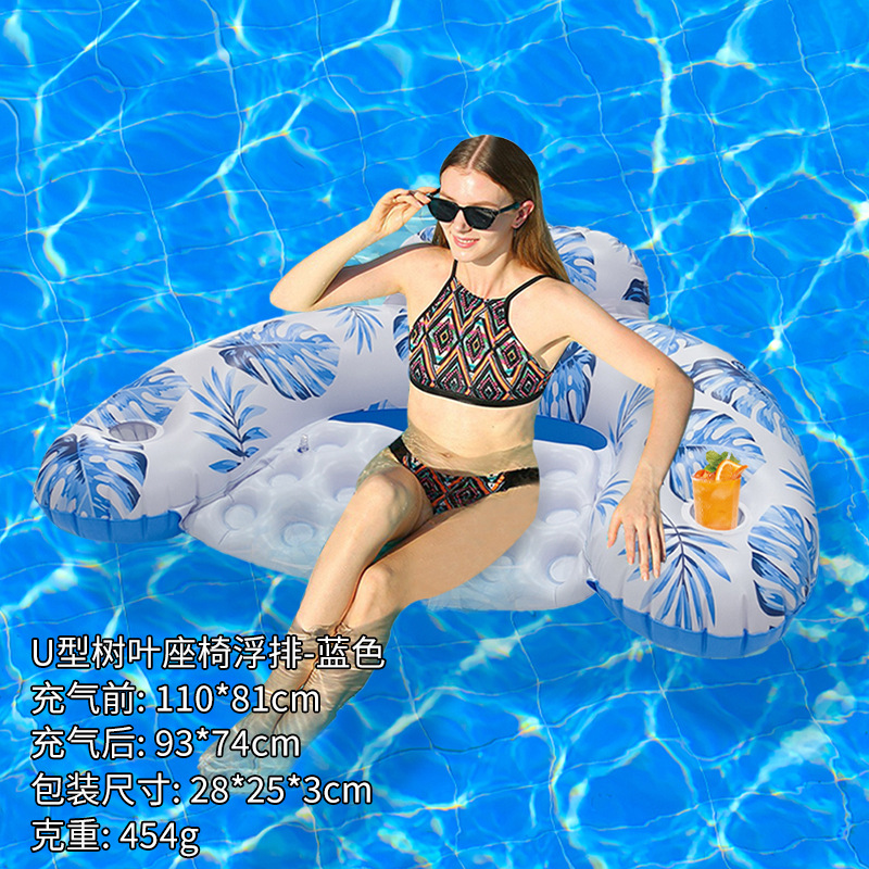 U型亮片树叶火烈鸟带杯托靠背充气躺椅便携式PVC加厚水上充气浮排