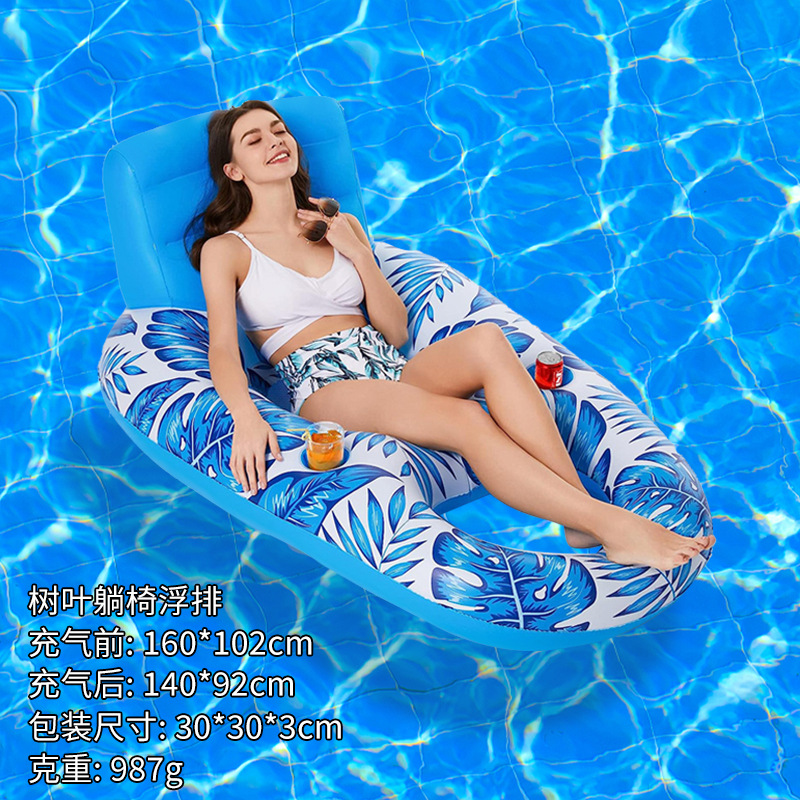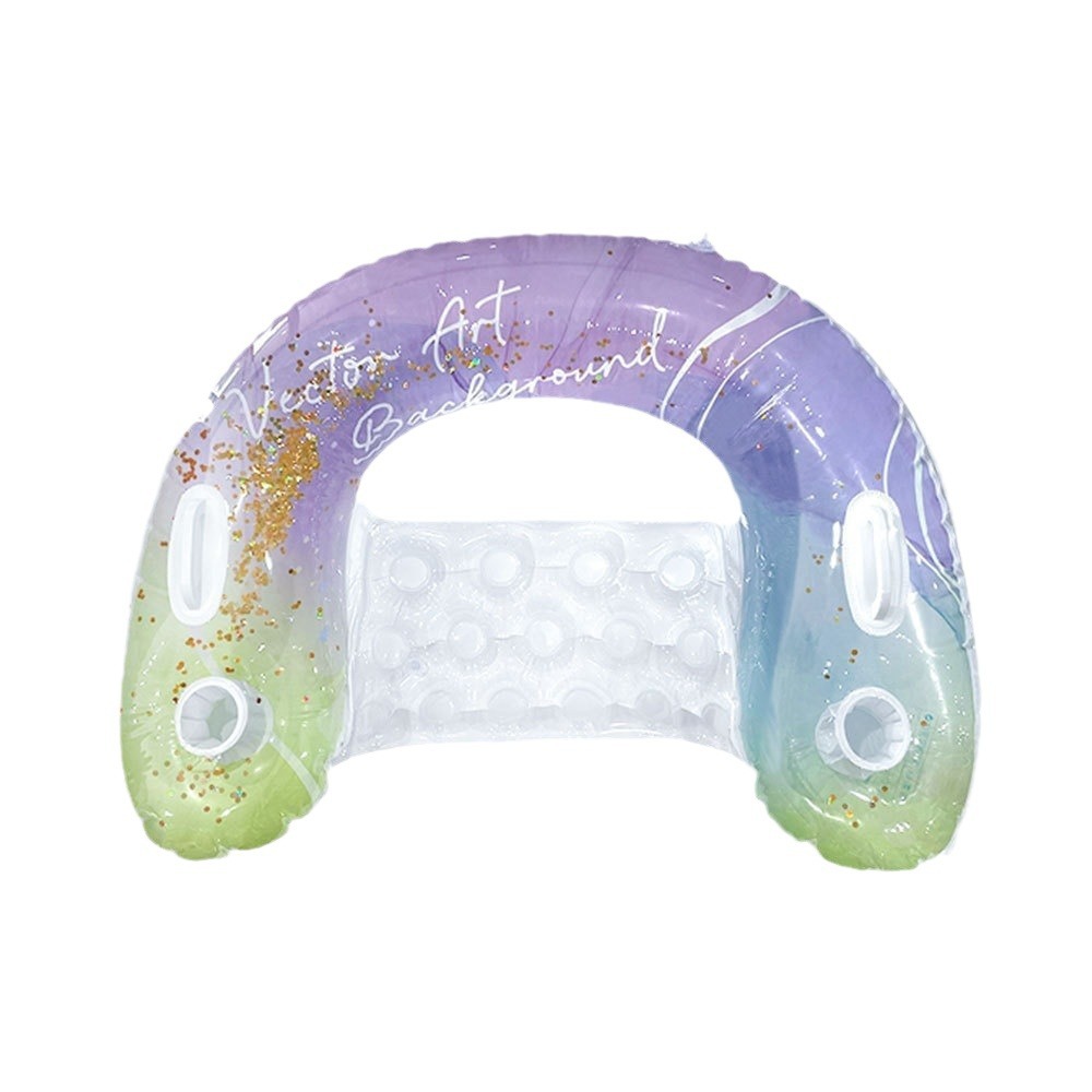 跨境新品PVC水上亮片水墨浮排U型彩虹水上沙发躺椅吊床现货批发