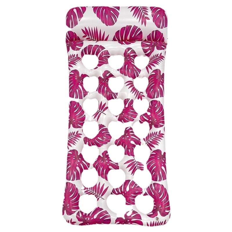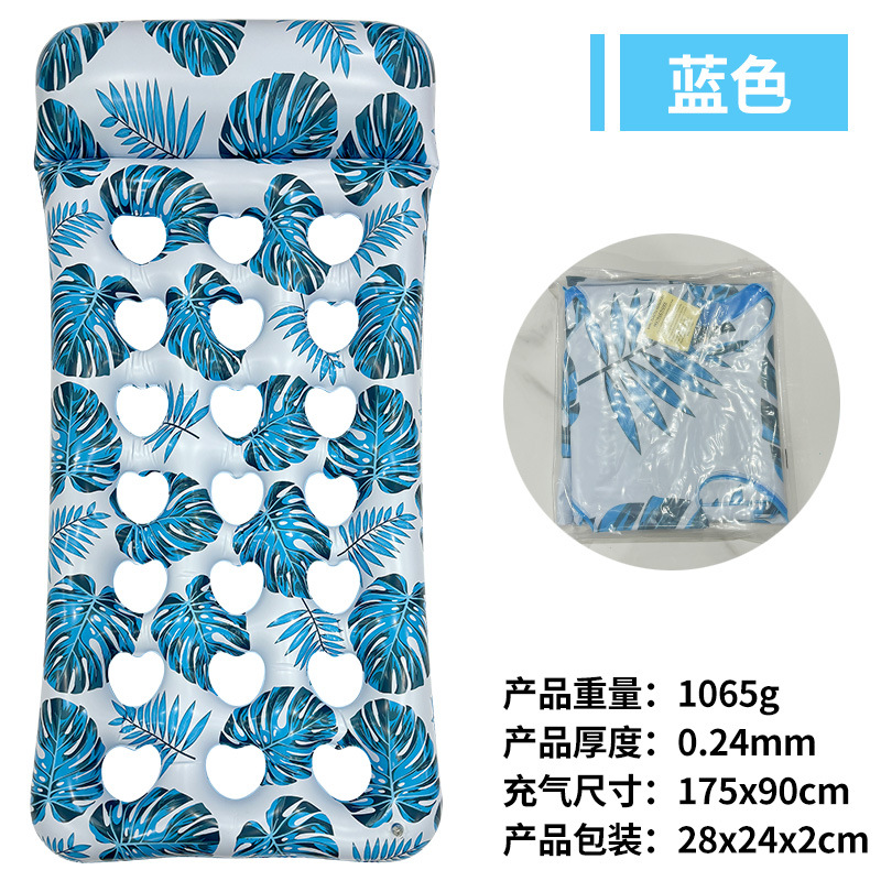 跨境新款充气树叶洞洞浮排户外水上树叶花纹浮排成人水上躺椅浮排