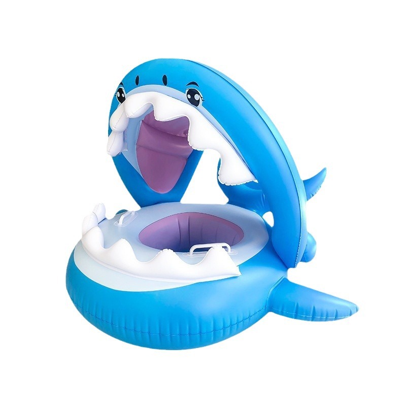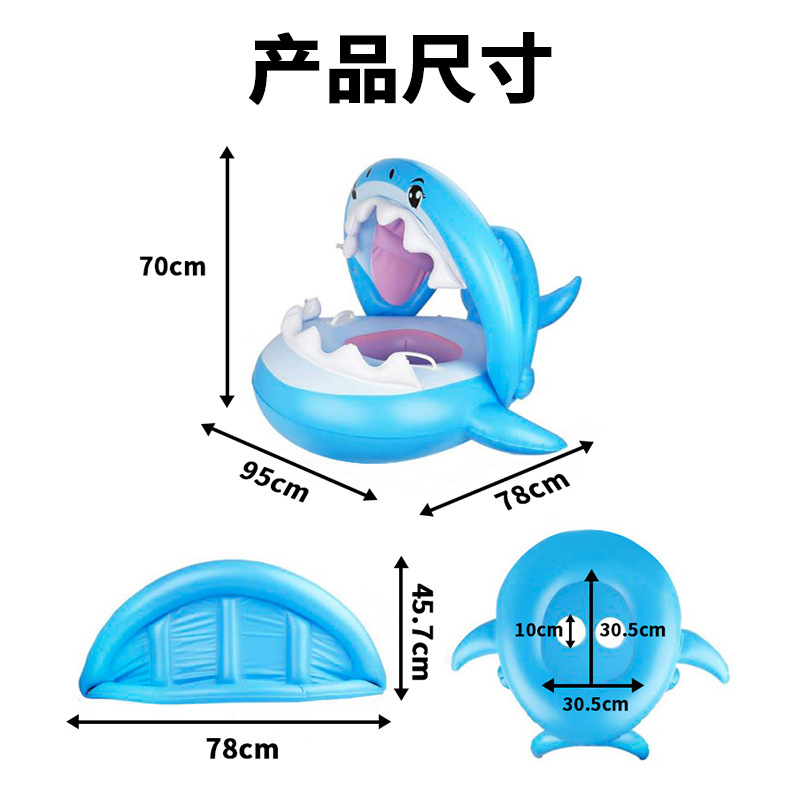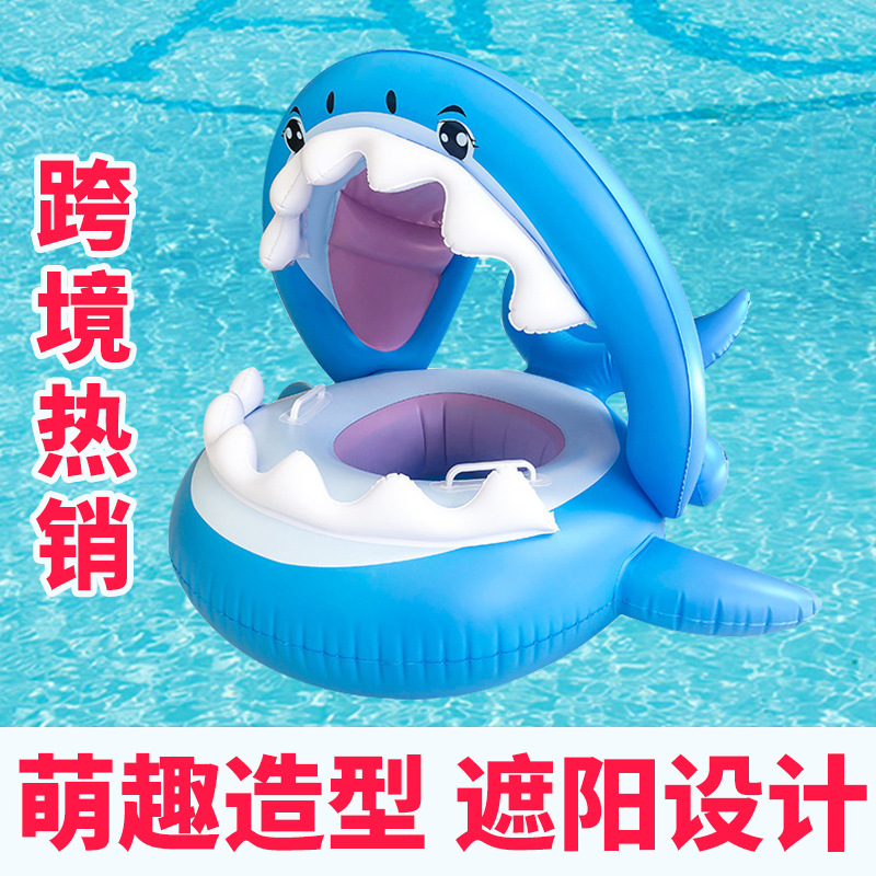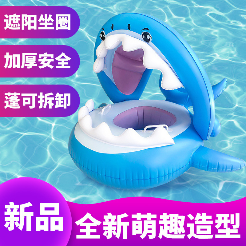 现货批发带蓬鲨鱼座圈 PVC儿童游泳座圈圈现货带遮阳蓬卡通座圈