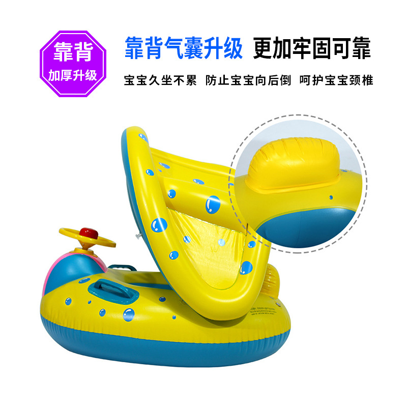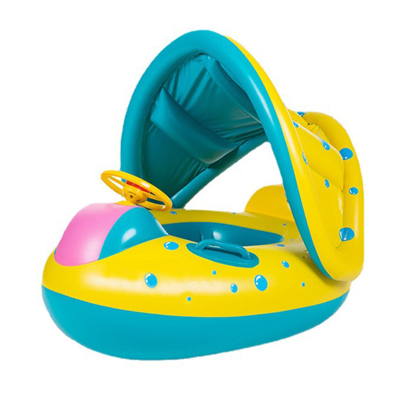 PVC带蓬座圈充气儿童游泳圈遮阳艇现货批发水上宝宝戏水玩具座圈