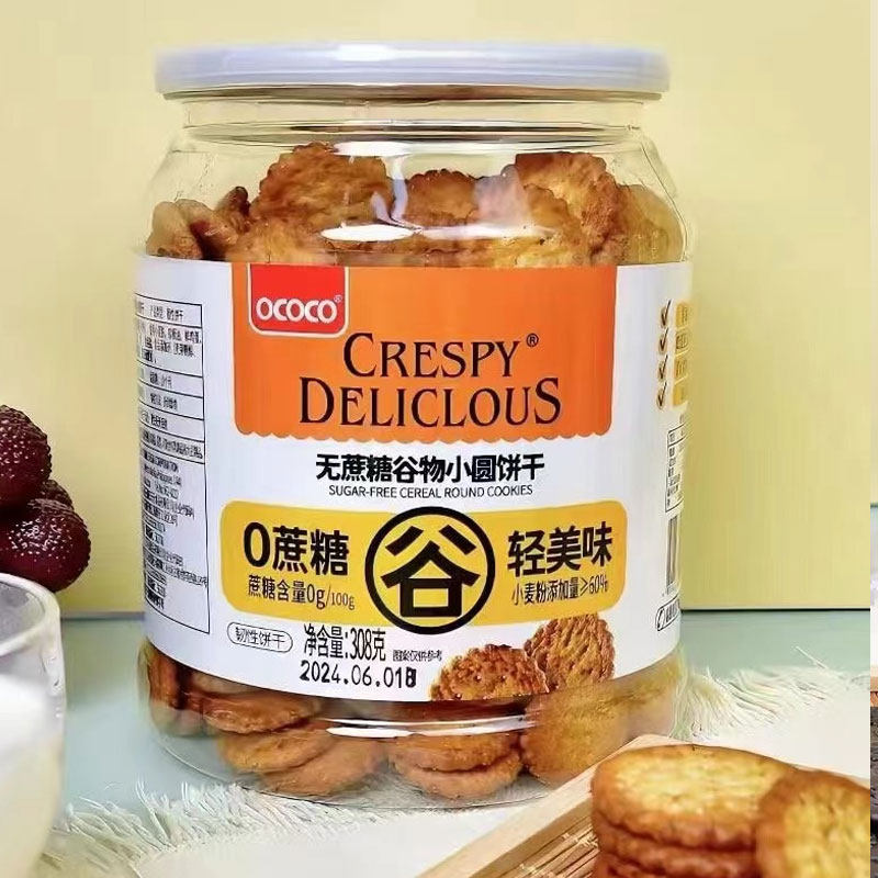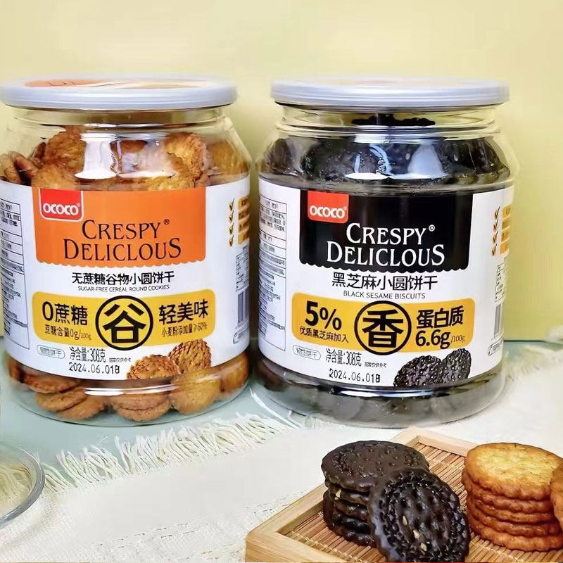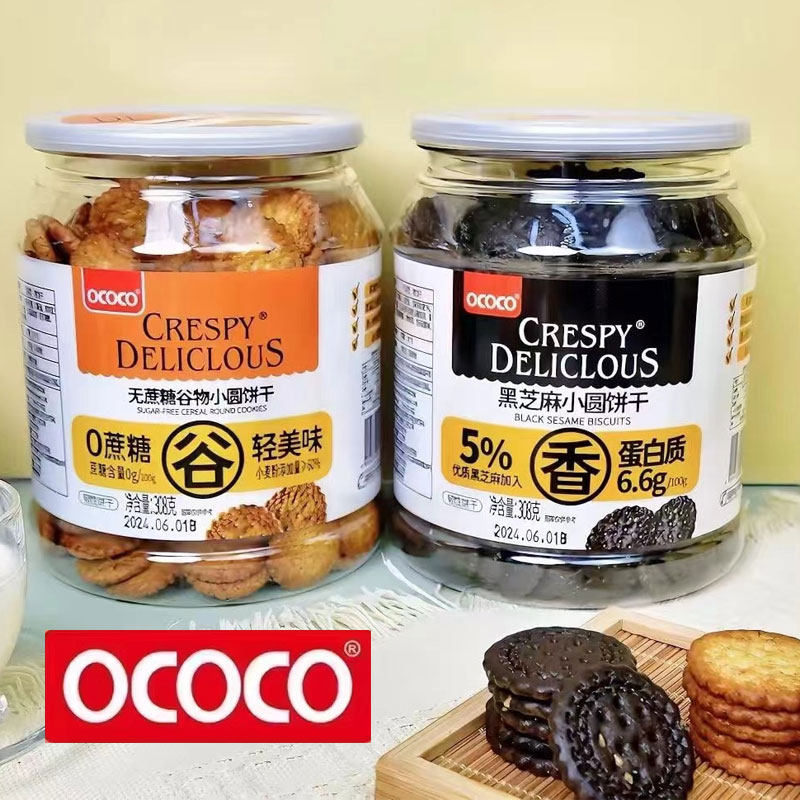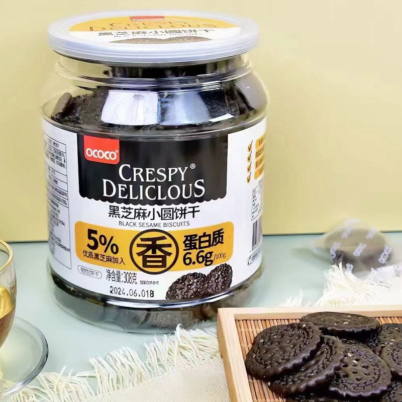 OCOCO谷物小圆饼干罐装308g 黑芝麻味休闲办公解馋下午茶网红零食