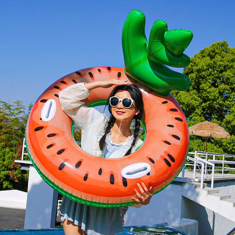 厂家新款水果游泳圈ins柠檬西瓜泳圈浮排躺椅成人pvc水上泳圈批发