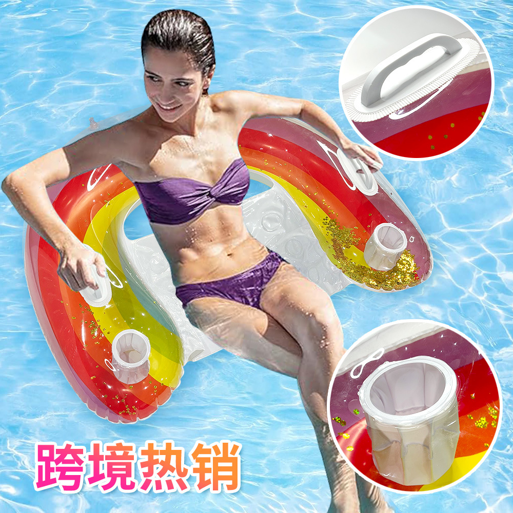 厂家新款充气彩虹座椅浮排成人水上亮片浮排带杯托多功能座椅浮排