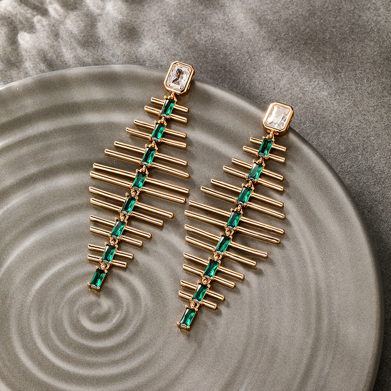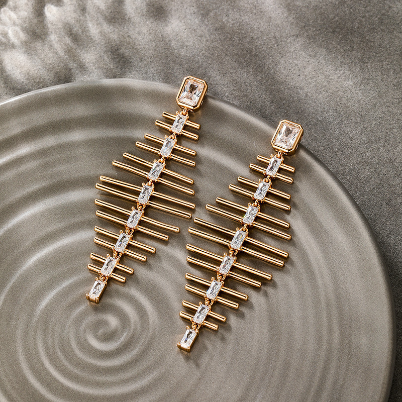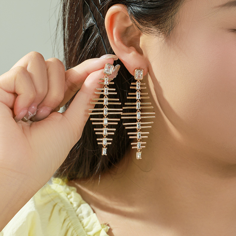 旭平 时尚铜合金镀18k金色俄罗斯款流苏耳环小众个性长款气质耳饰