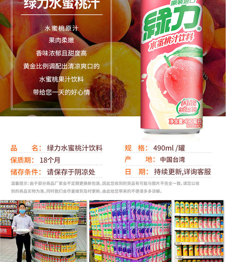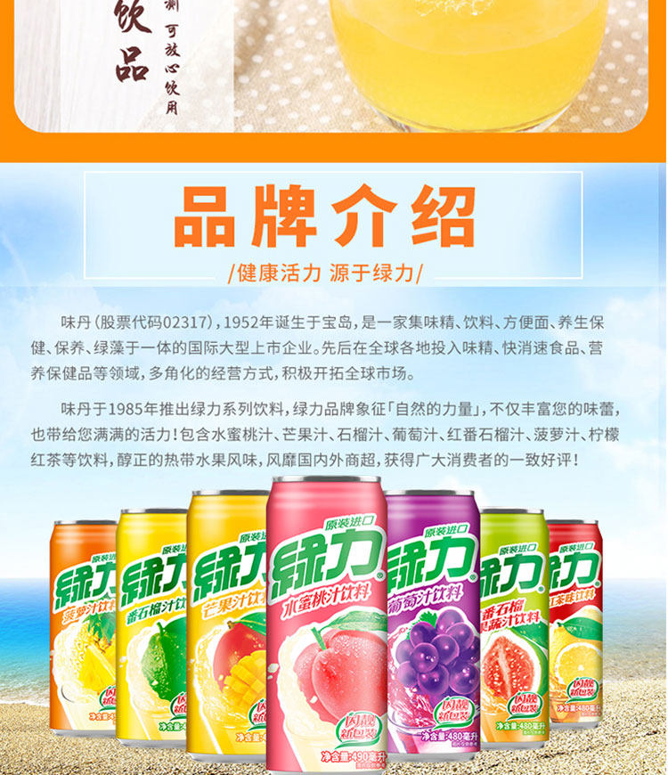 台湾原产绿力水蜜桃葡萄芭乐网红老牌子听装整箱饮料