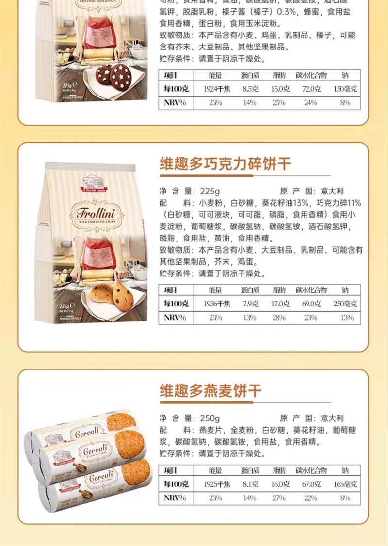 意大利维趣多燕麦全麦糖花装饰巧克力碎可可榛子葡萄干脆米粒饼干