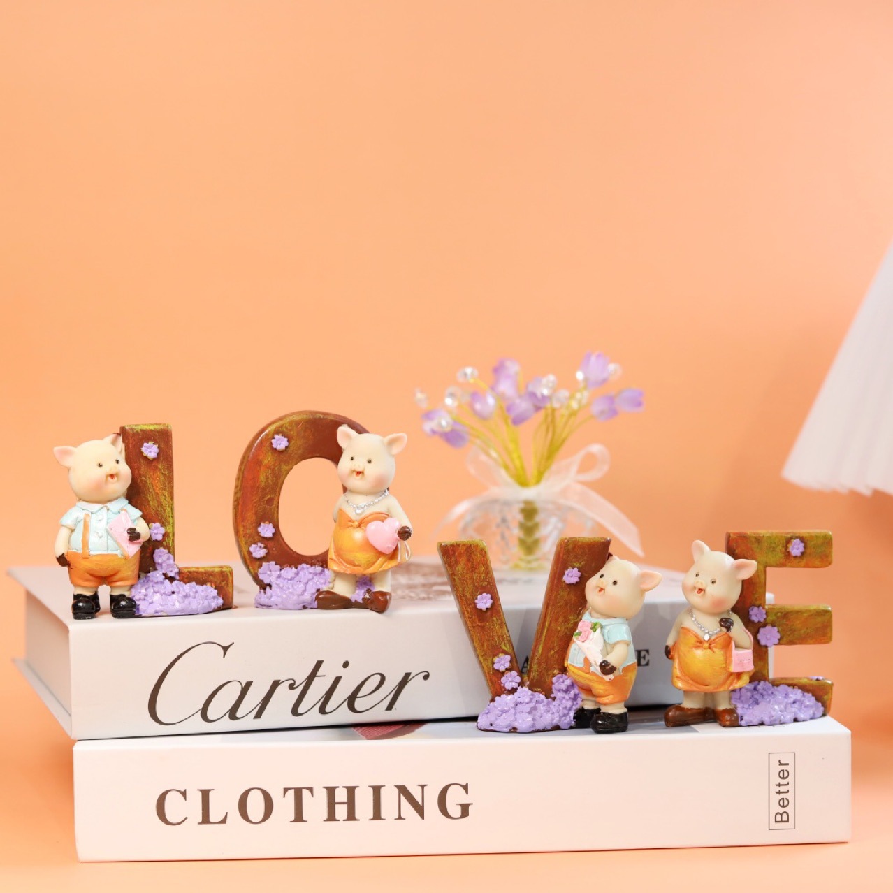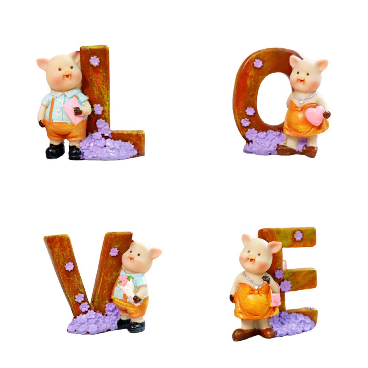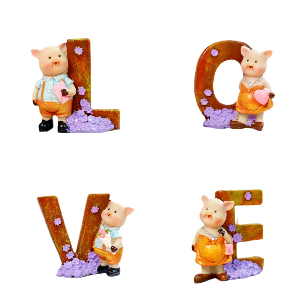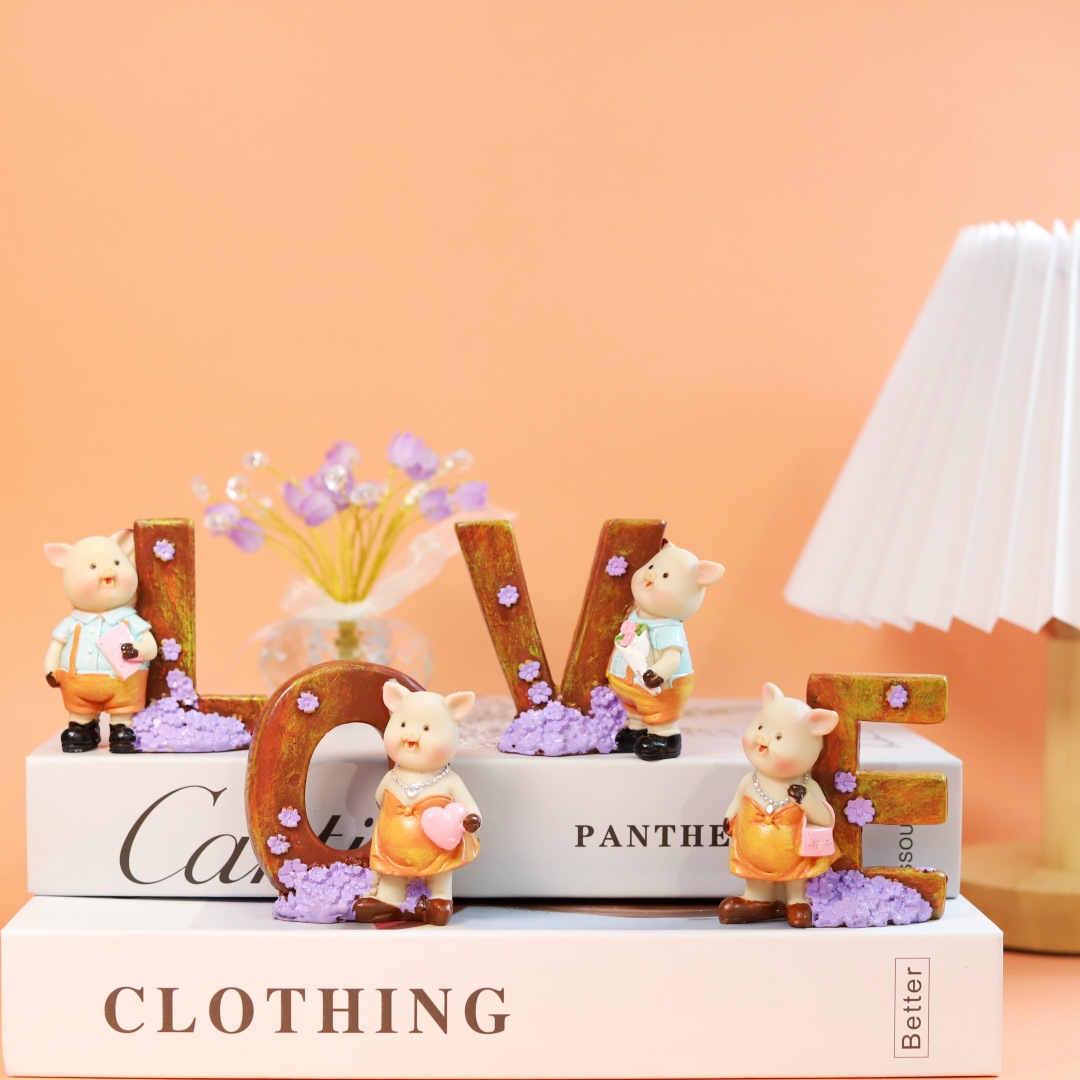 跨境创意情人节礼物LOVE可爱小猪雕像设计装饰品树脂工艺品家居摆