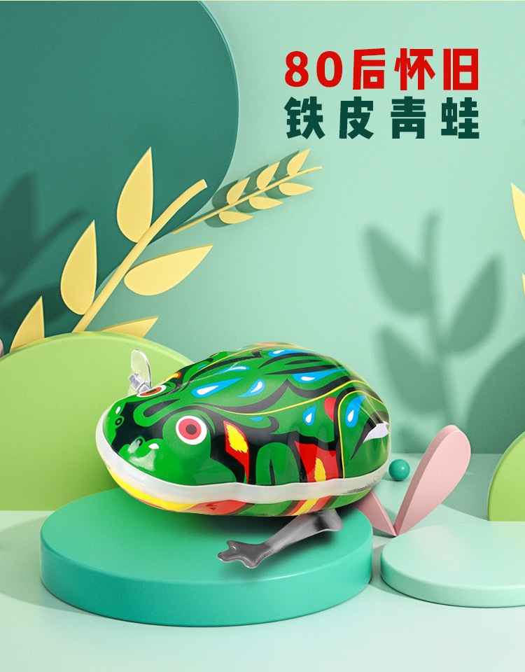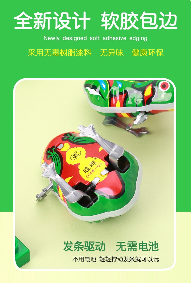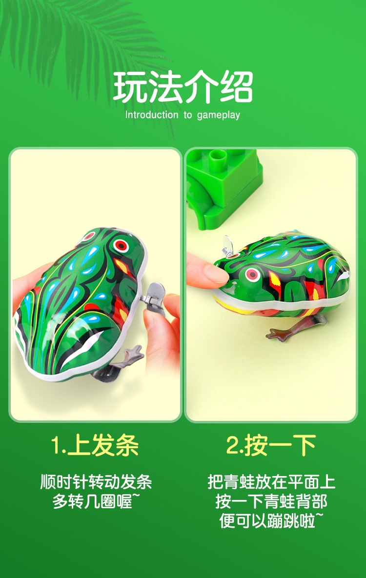 铁皮青蛙发条玩具跳跳蛙上链发条儿童玩具小青蛙3C包边源头厂家