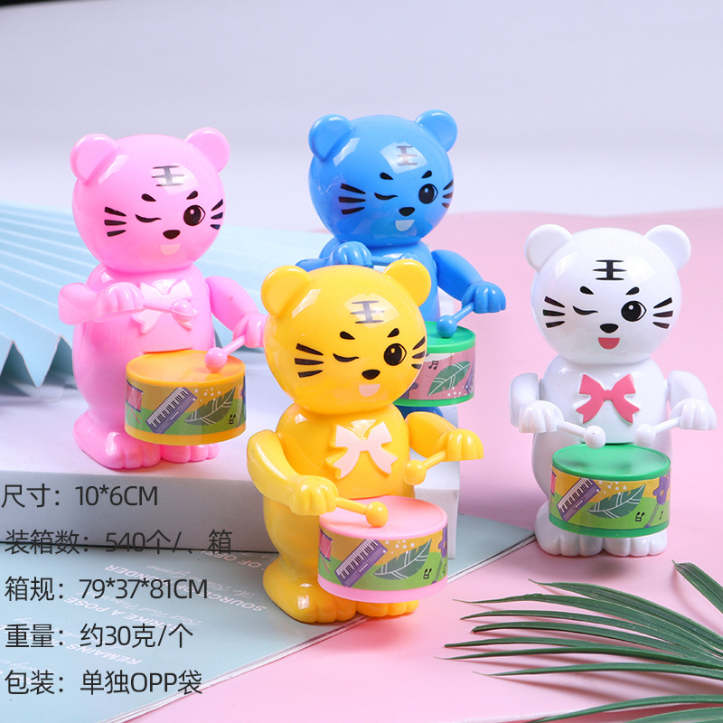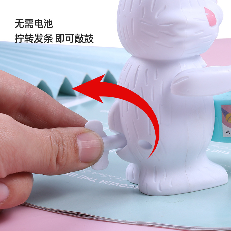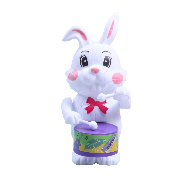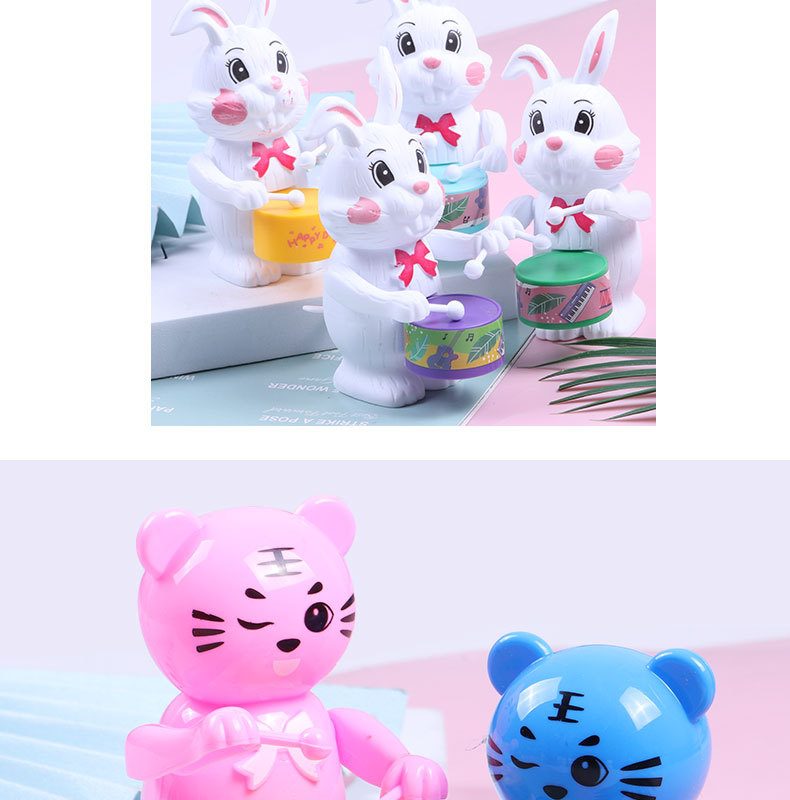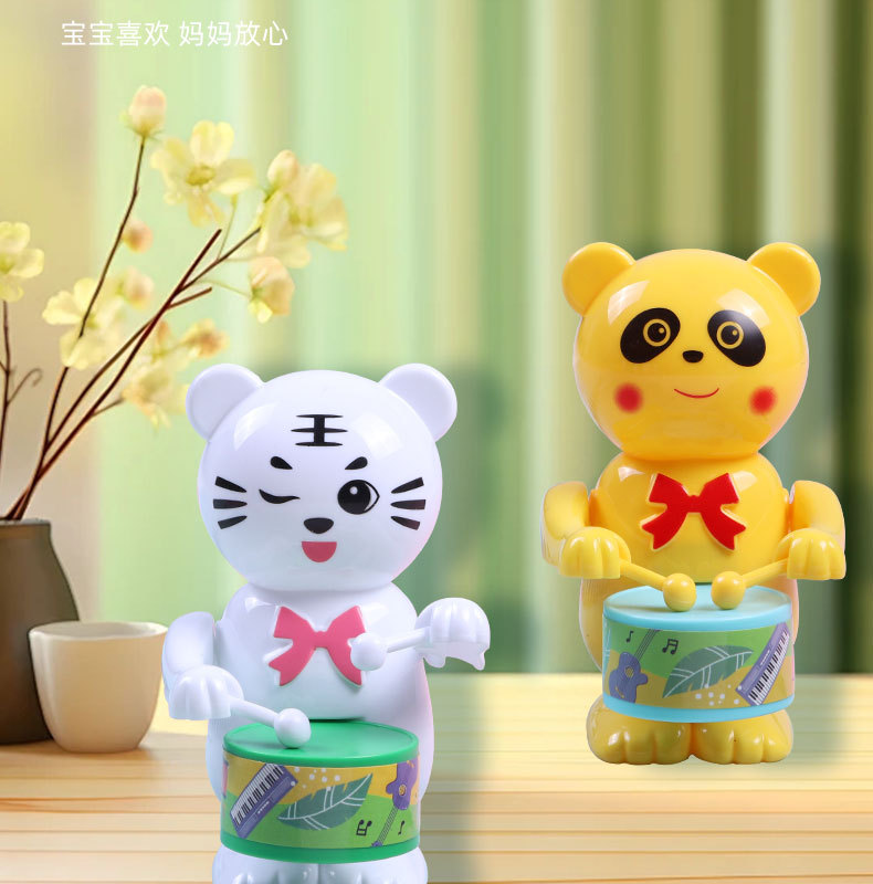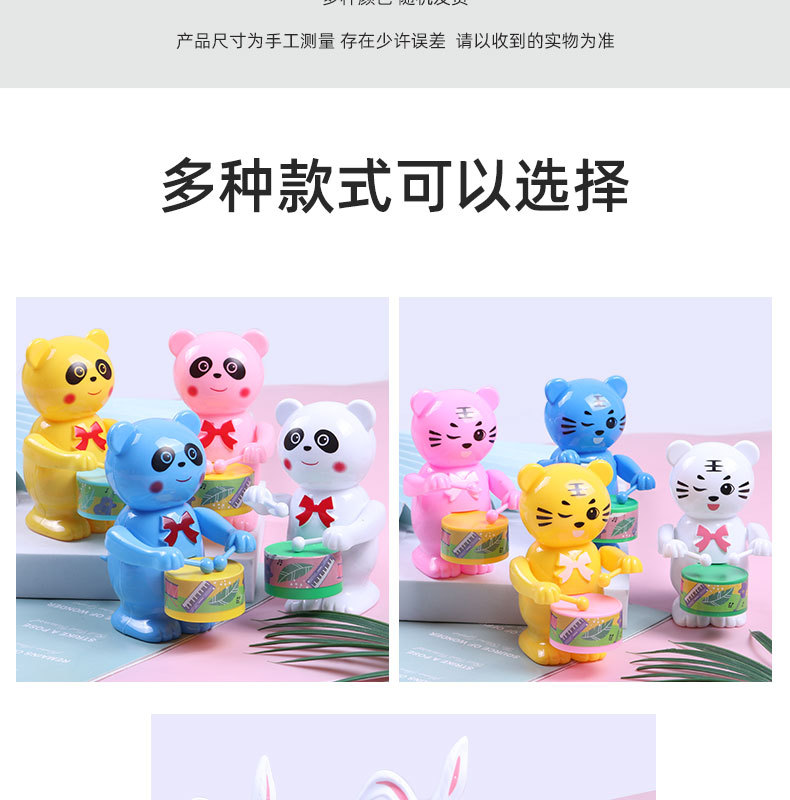 发条打鼓兔子儿童玩具打鼓小熊小老虎益智卡通上链上弦仿真动物
