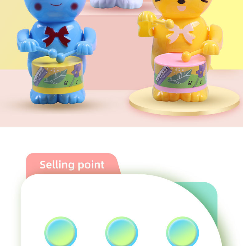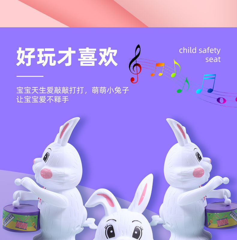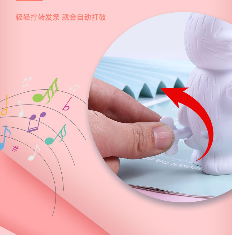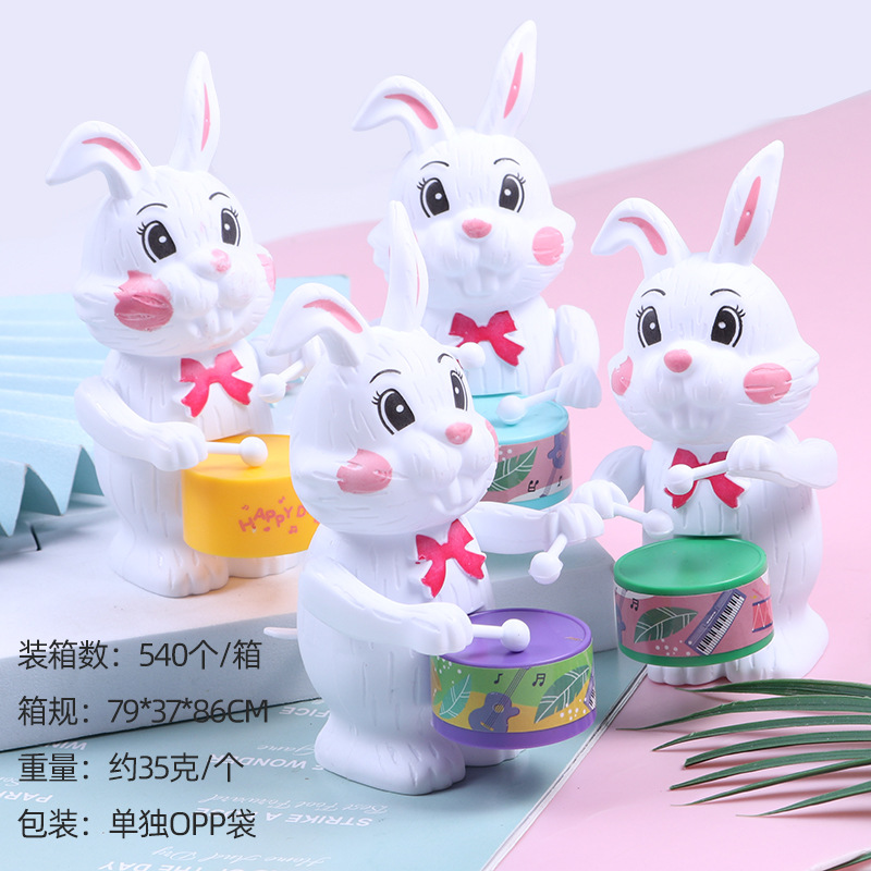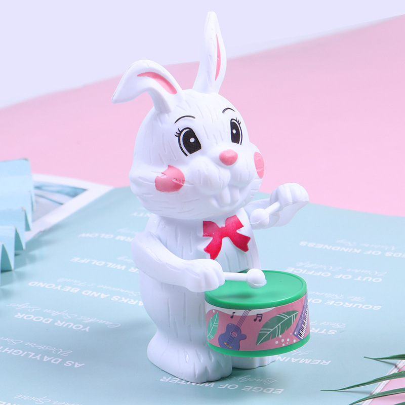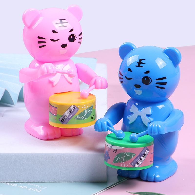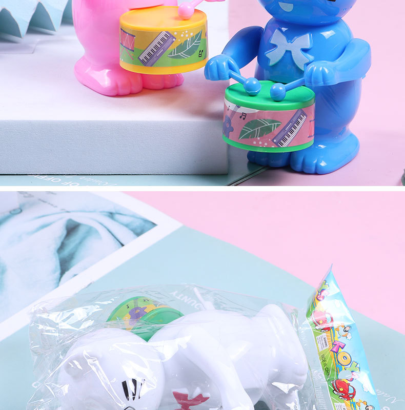 发条打鼓兔子儿童玩具打鼓小熊小老虎益智卡通上链上弦仿真动物