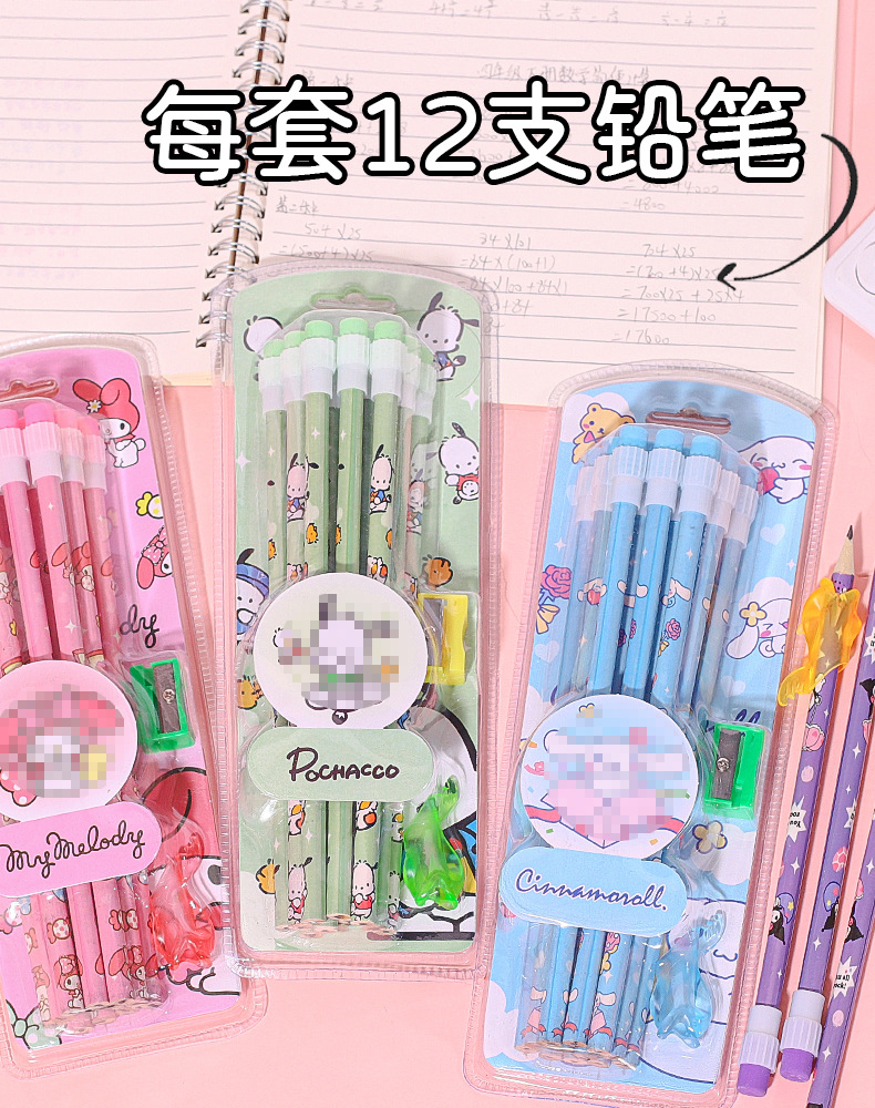 HB铅笔库洛米玉桂狗帕恰狗美乐蒂笔三丽鸥12支装铅笔带笔刨大头笔