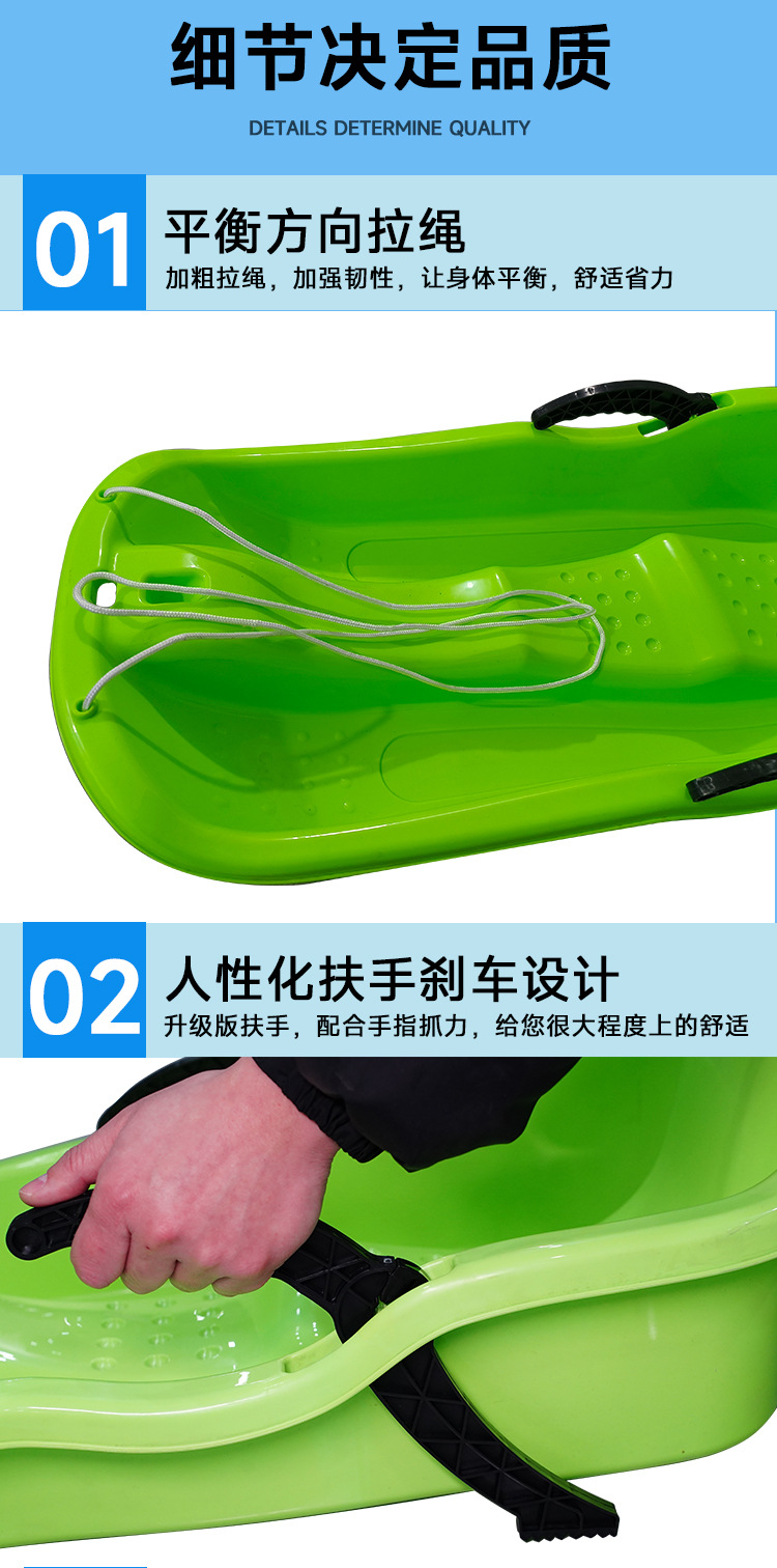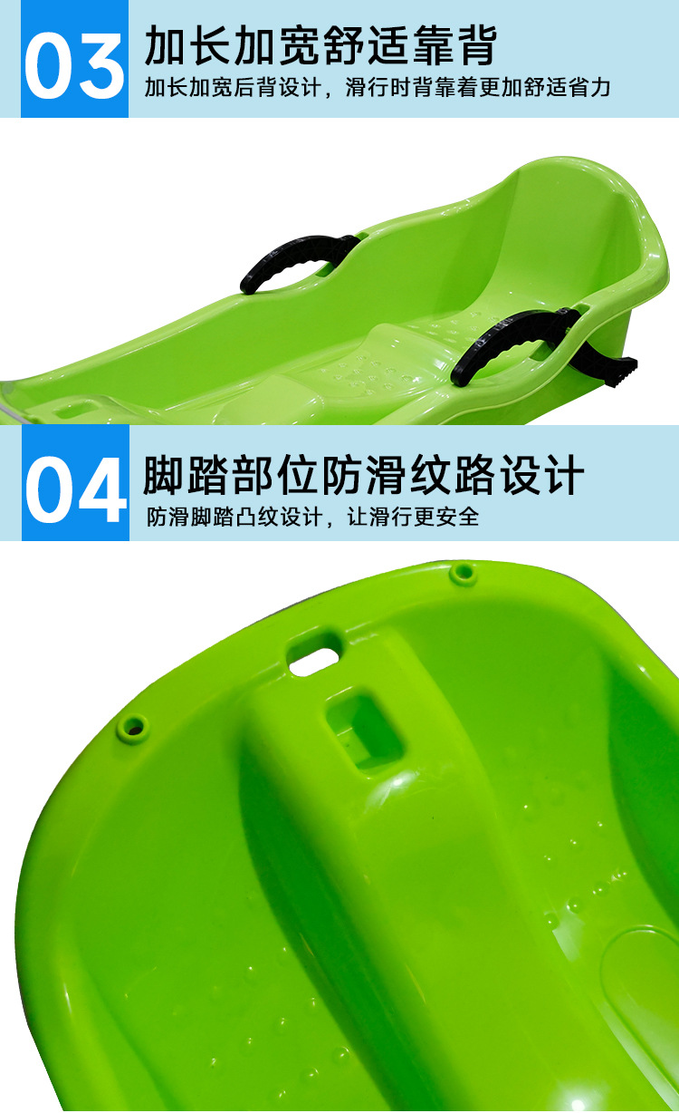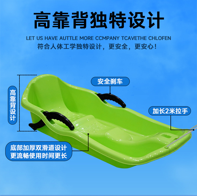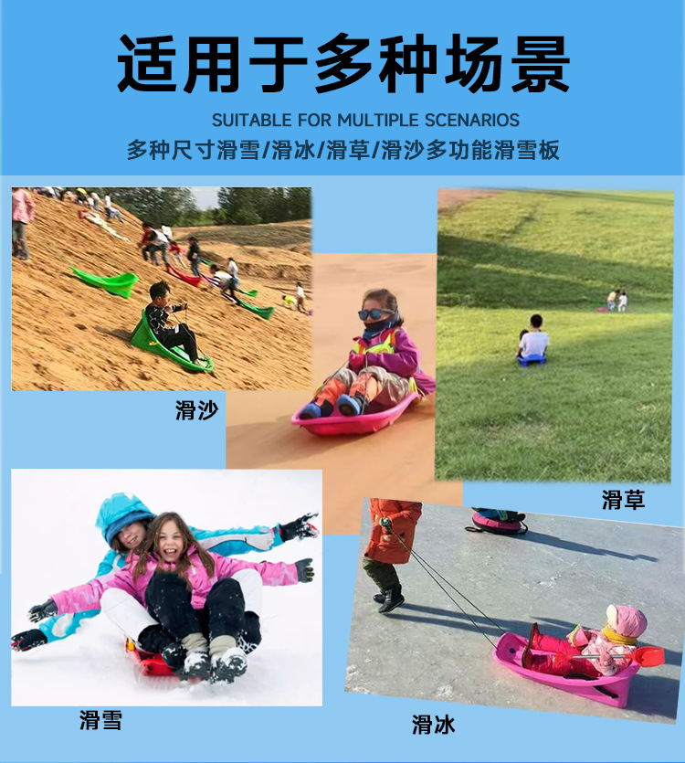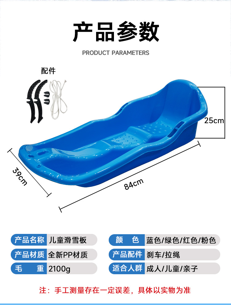 新款加厚双人滑雪板成人儿童亲子户外滑草板雪橇爬犁滑沙板带刹车