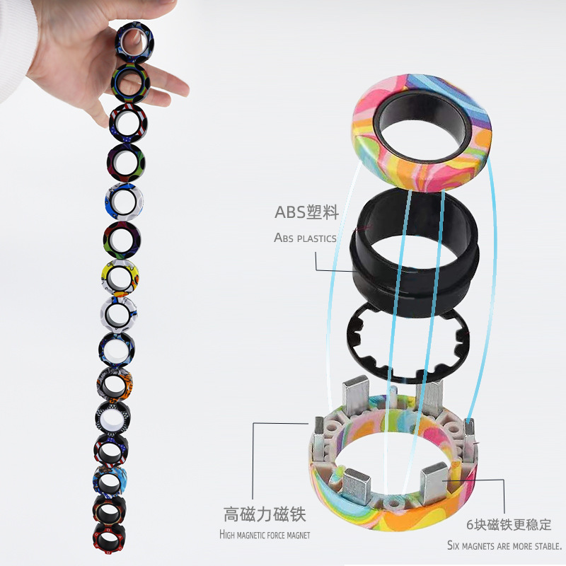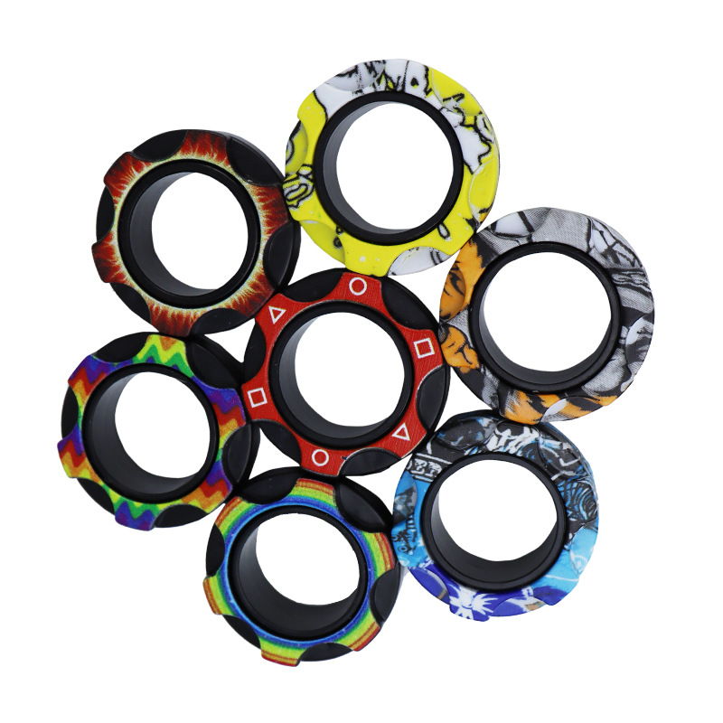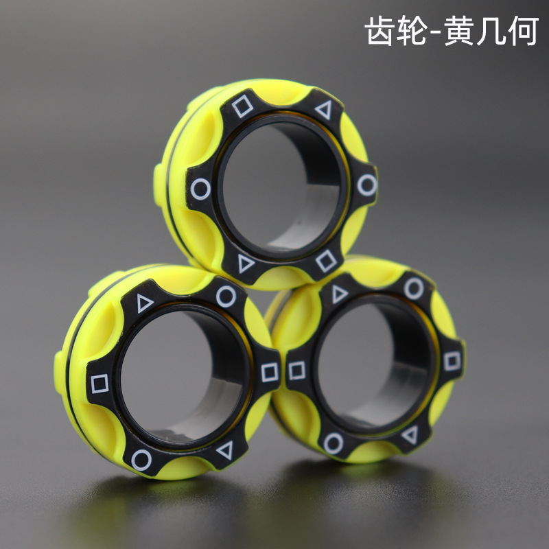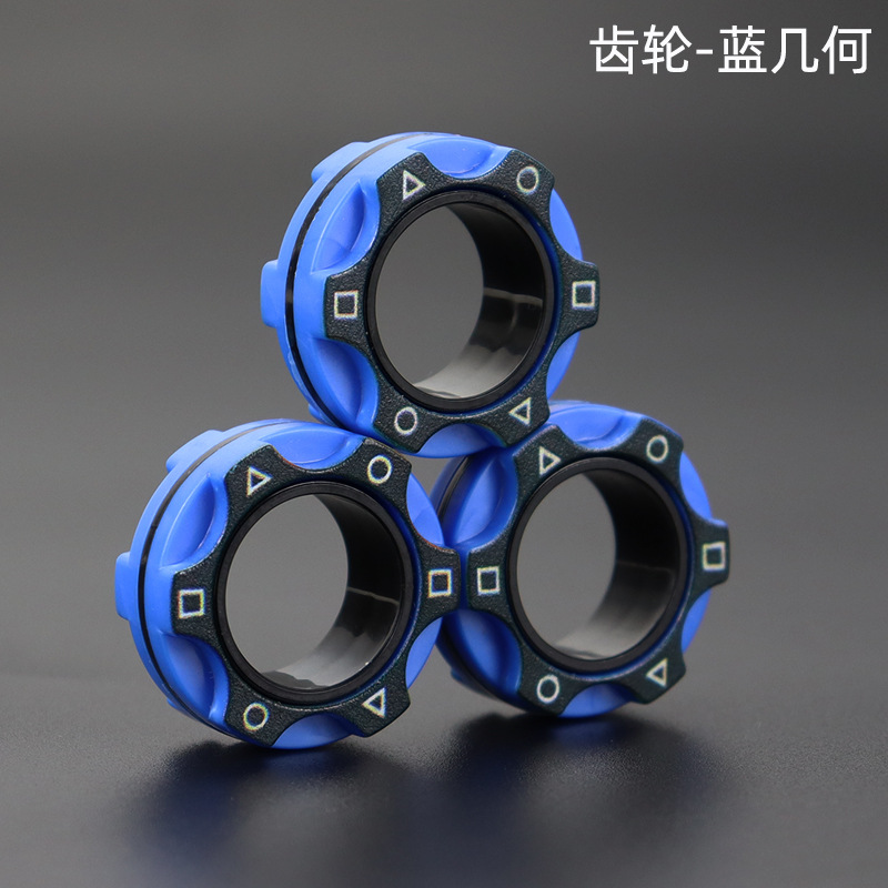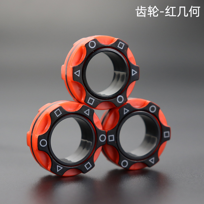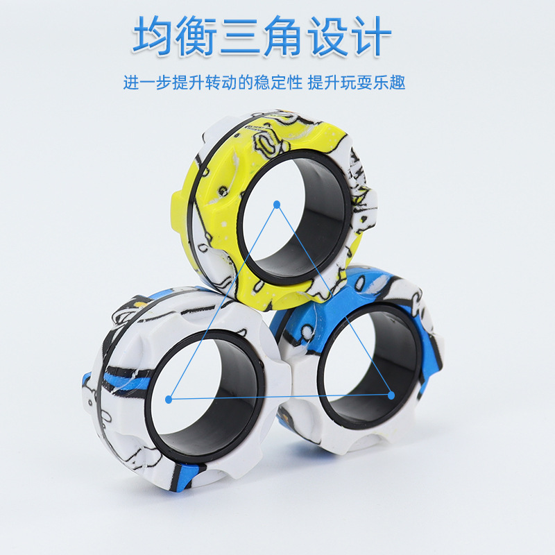 新款迷彩齿轮磁力手环ji戒指解压玩具减压指环手指陀螺亚马逊跨境