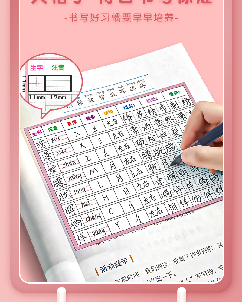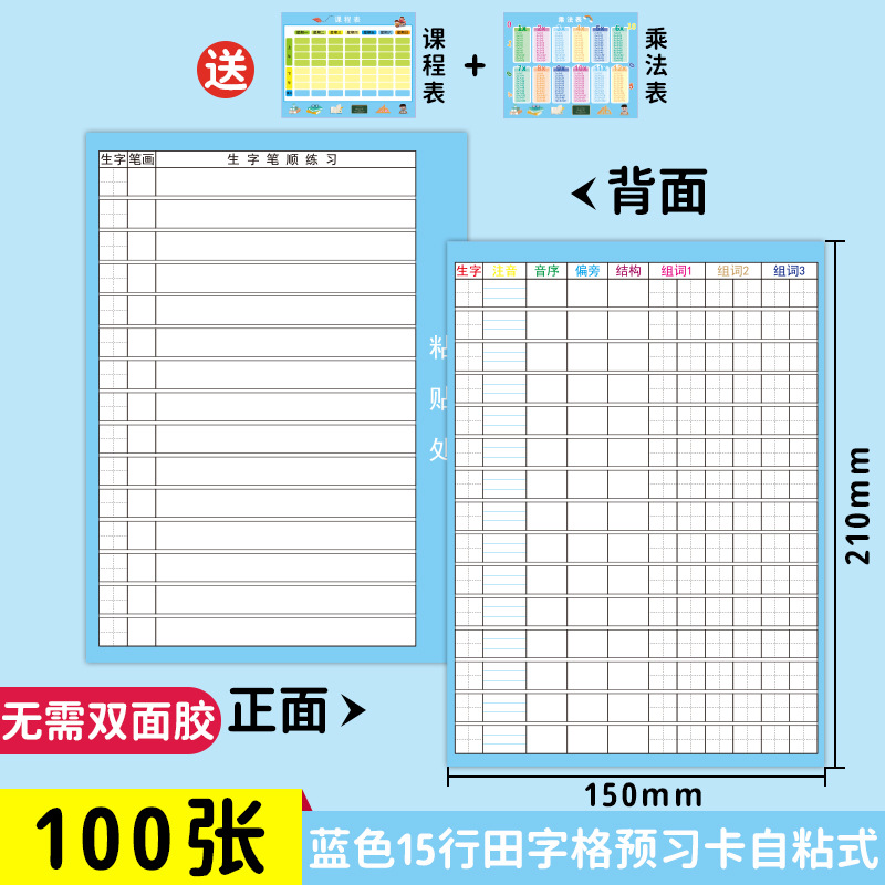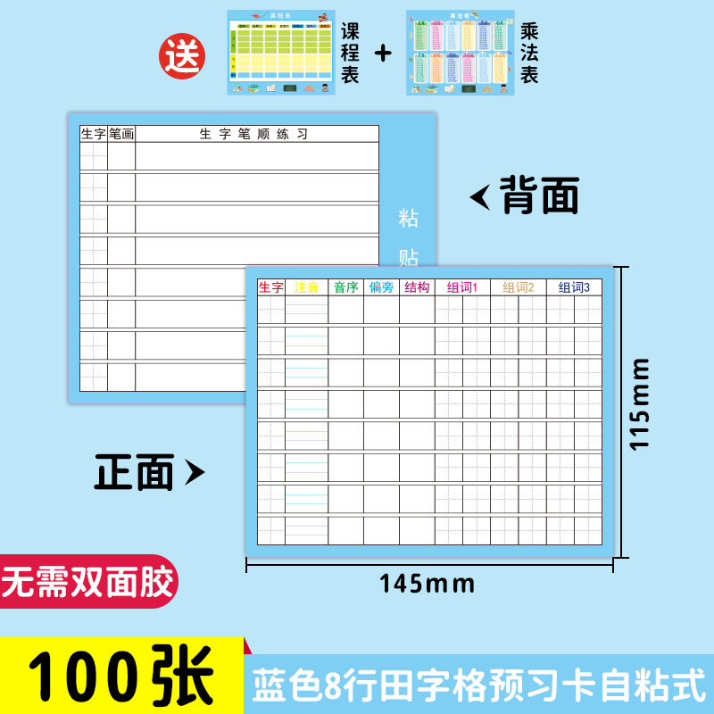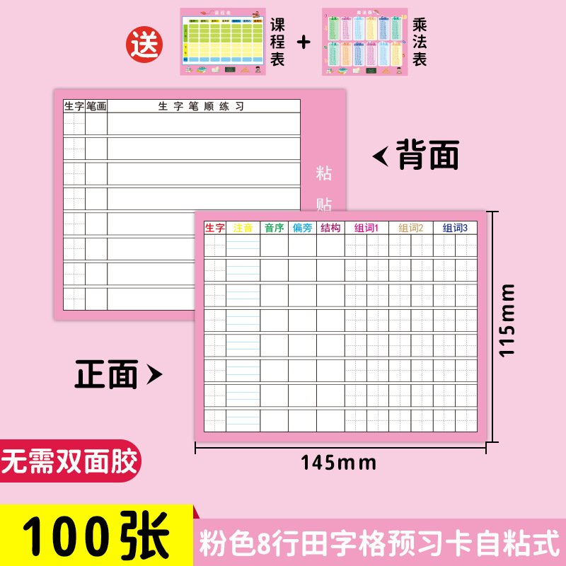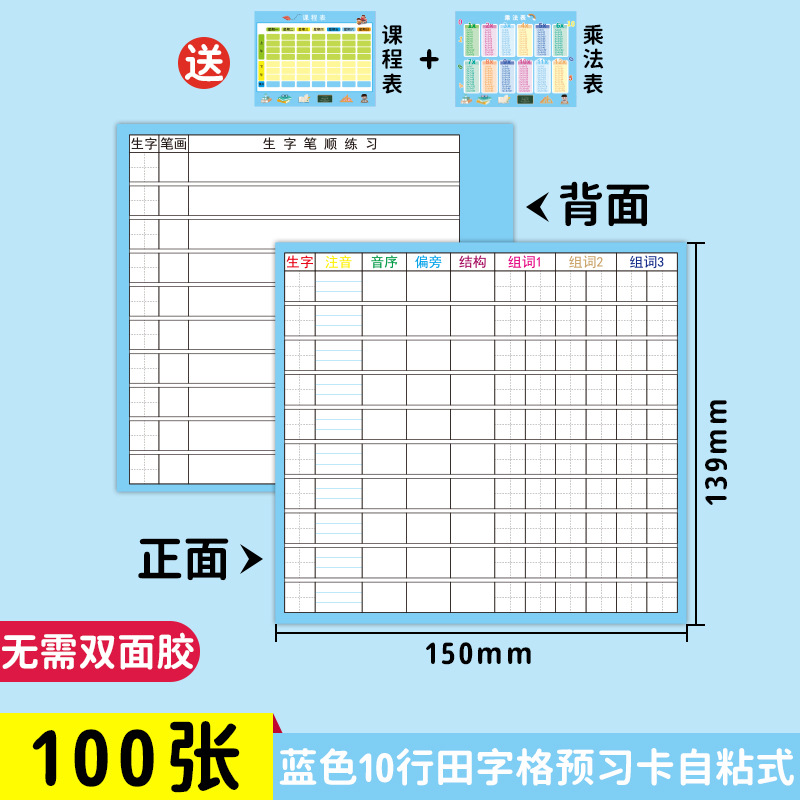 生字预习卡语文自粘小学生一二三四五六年级通用课前预习纸半册