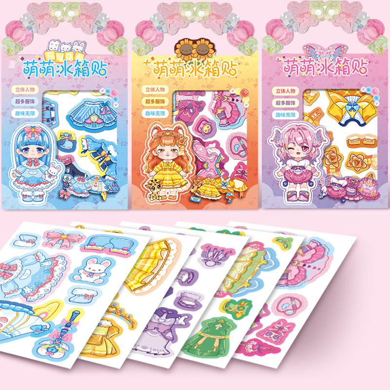 公主换装磁力贴纸diy制作女孩儿童冰箱贴反复贴穿衣装扮贴画