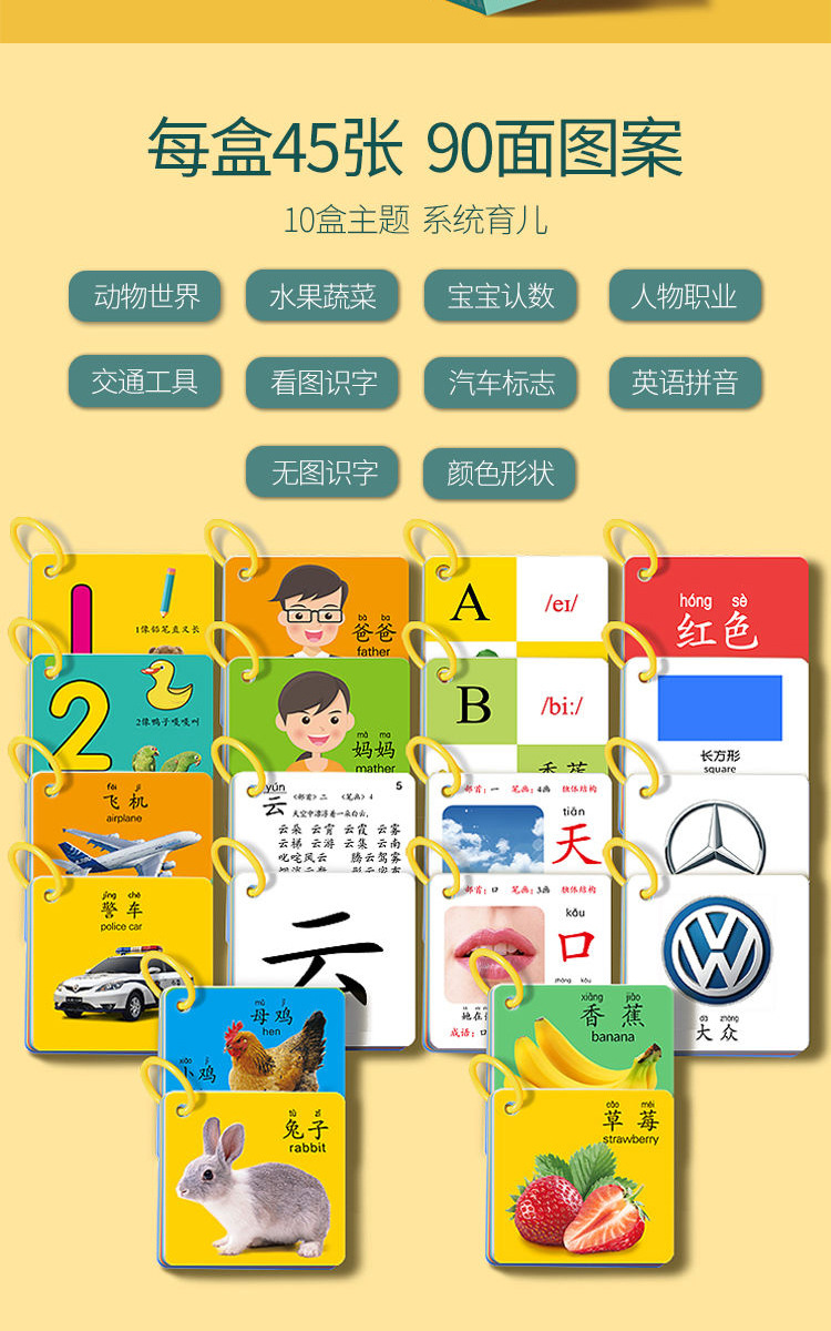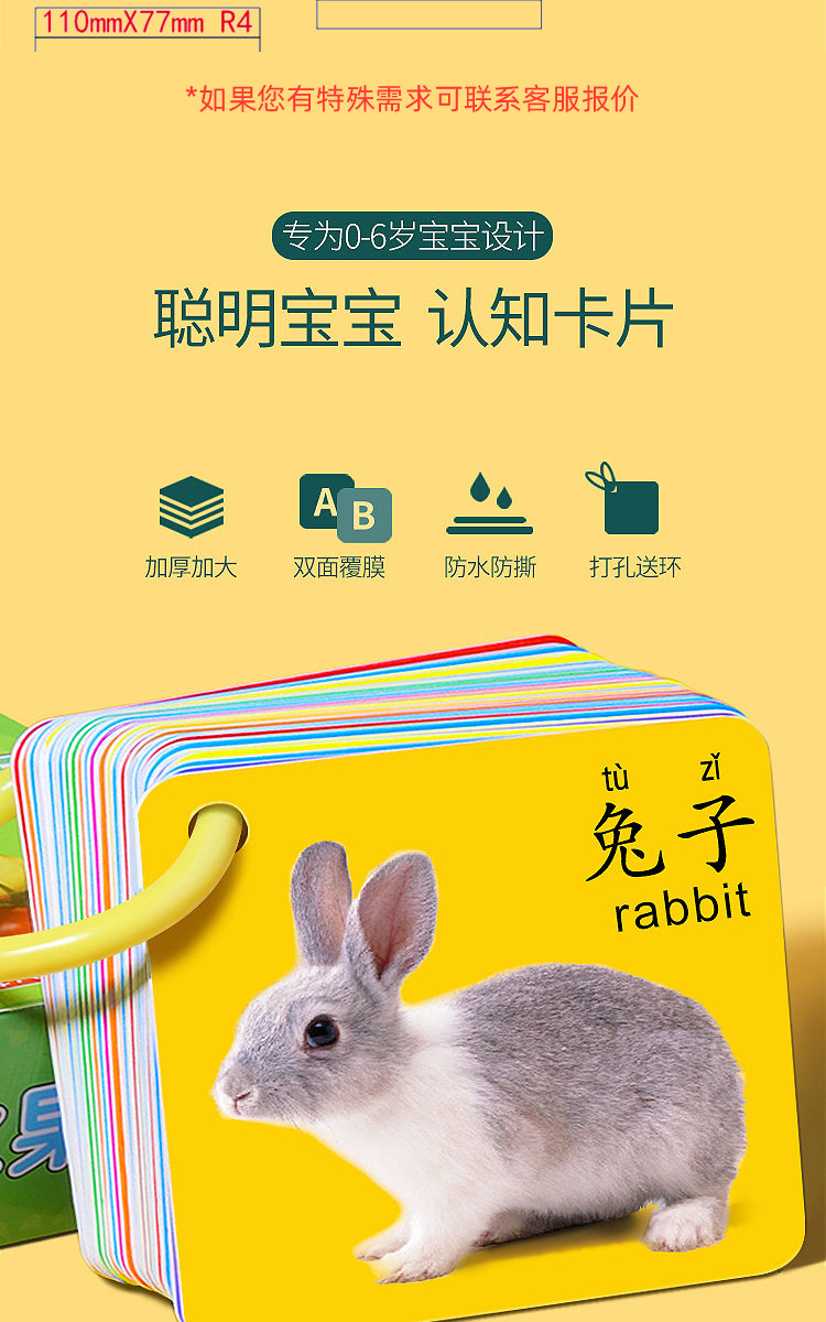 定制益智早教卡片跨境英文版宝宝撕不烂闪卡启蒙识字认知潜能卡