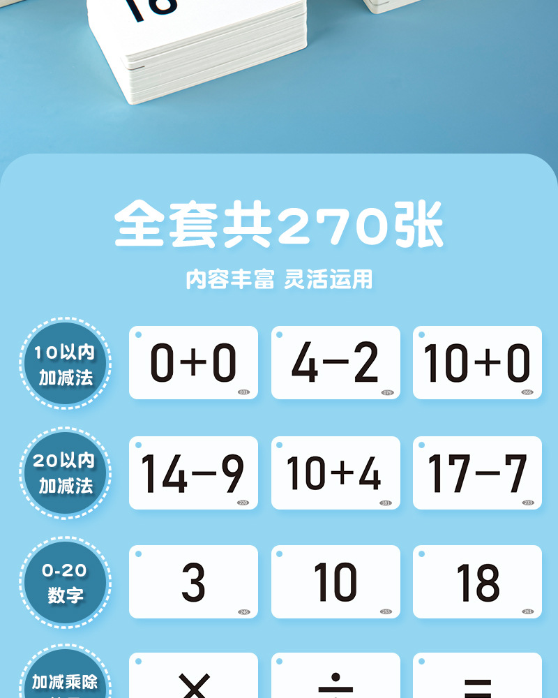 乘除口算题卡幼小衔接20以内小学知识点宝宝启蒙认知学习卡