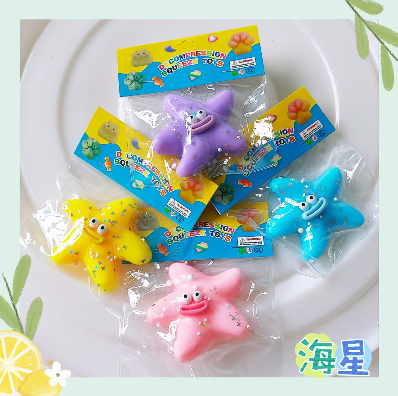 跨境仿真海洋系列可爱海星捏捏乐解压发泄玩具大嘴福眼小红书同款