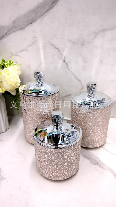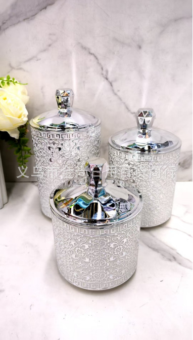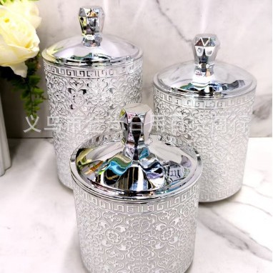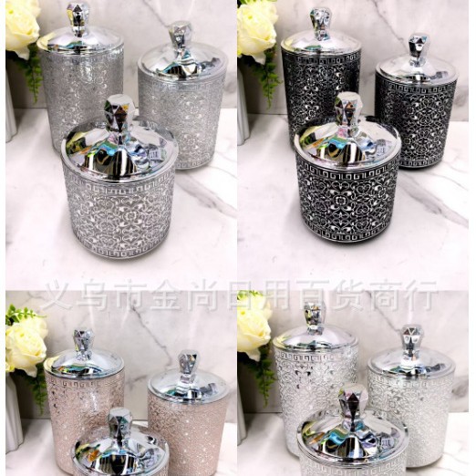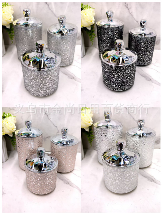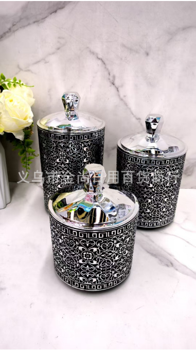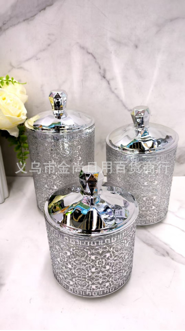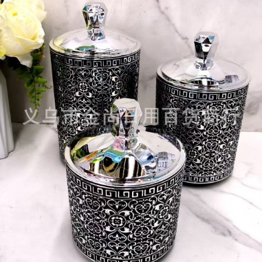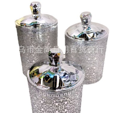 塑料烫银色砖款密封盒杂物粮食整理盒砖石盖圆形密封罐