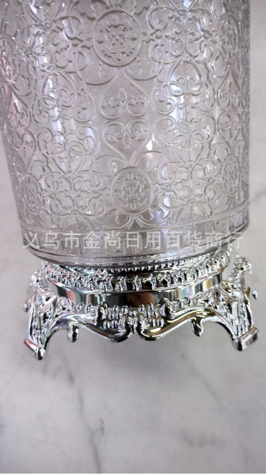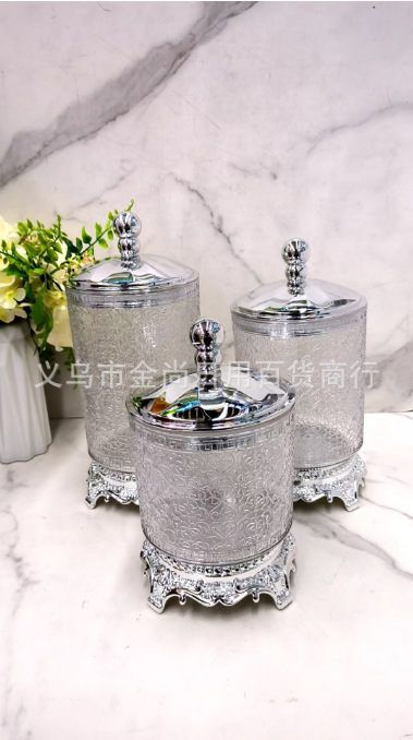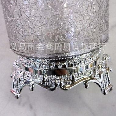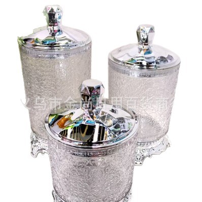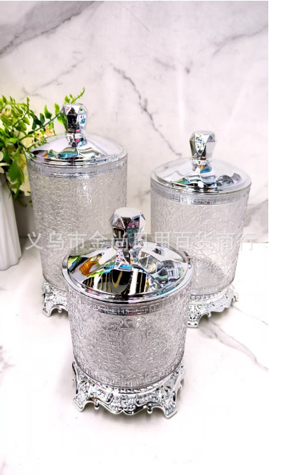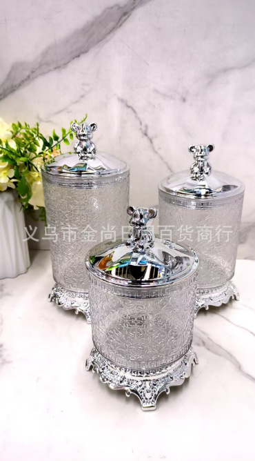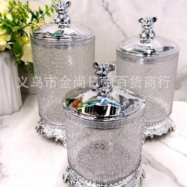 家用透明银色小熊盖圆盖砖石盖不烫银圈心花款托台圆型储物罐