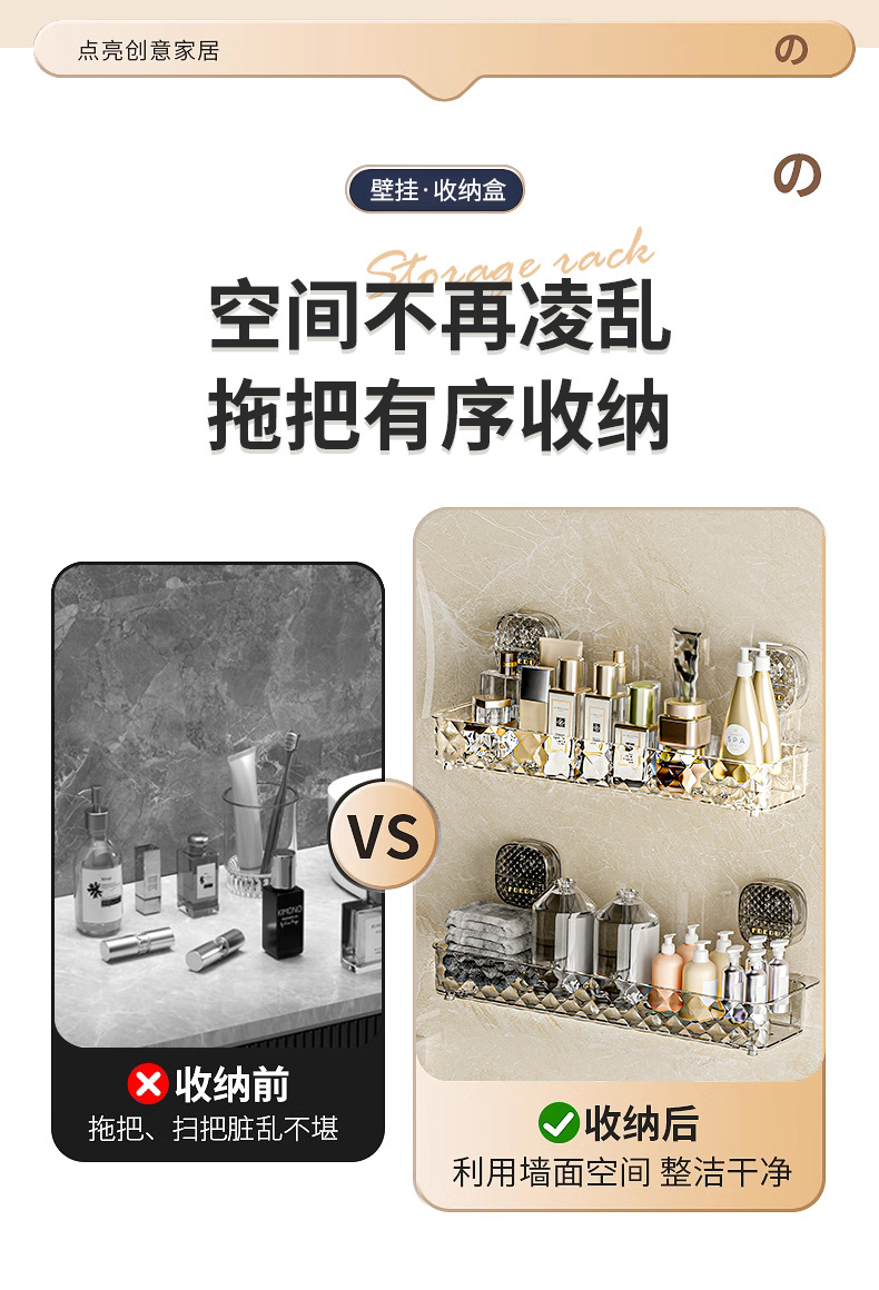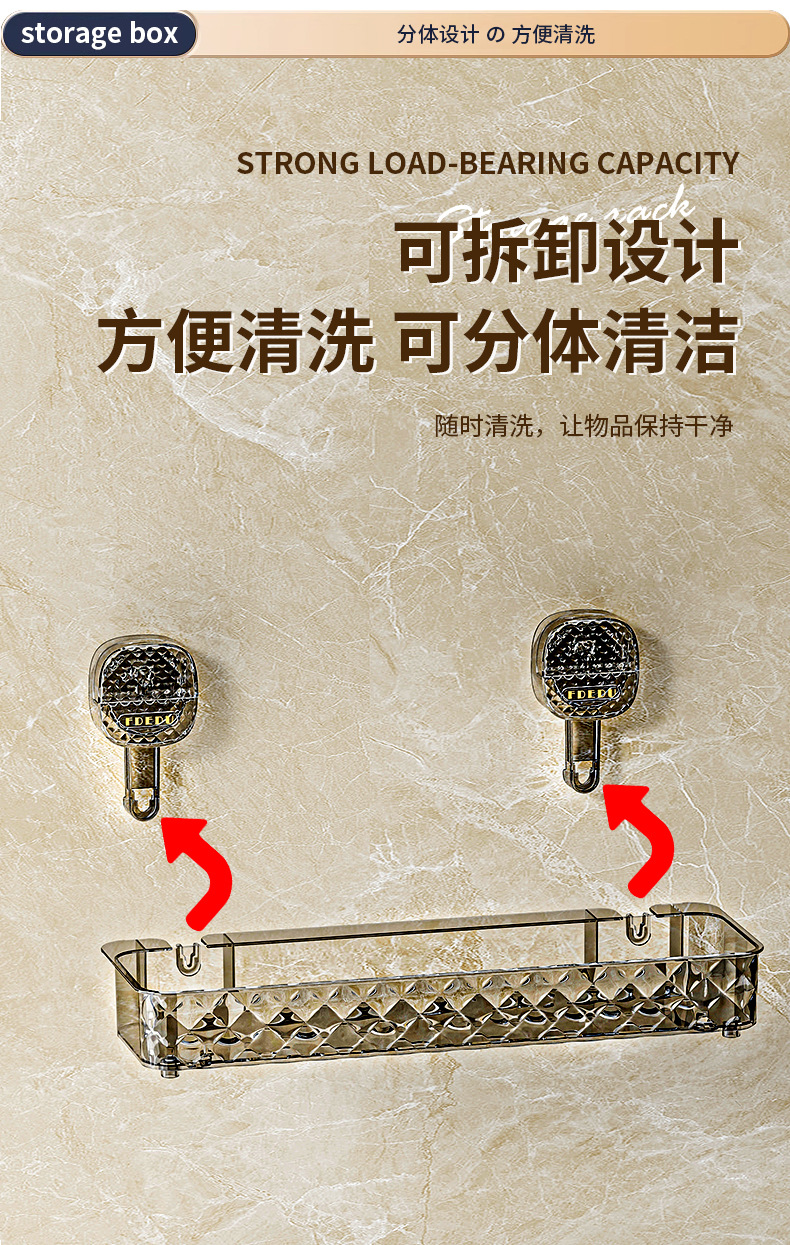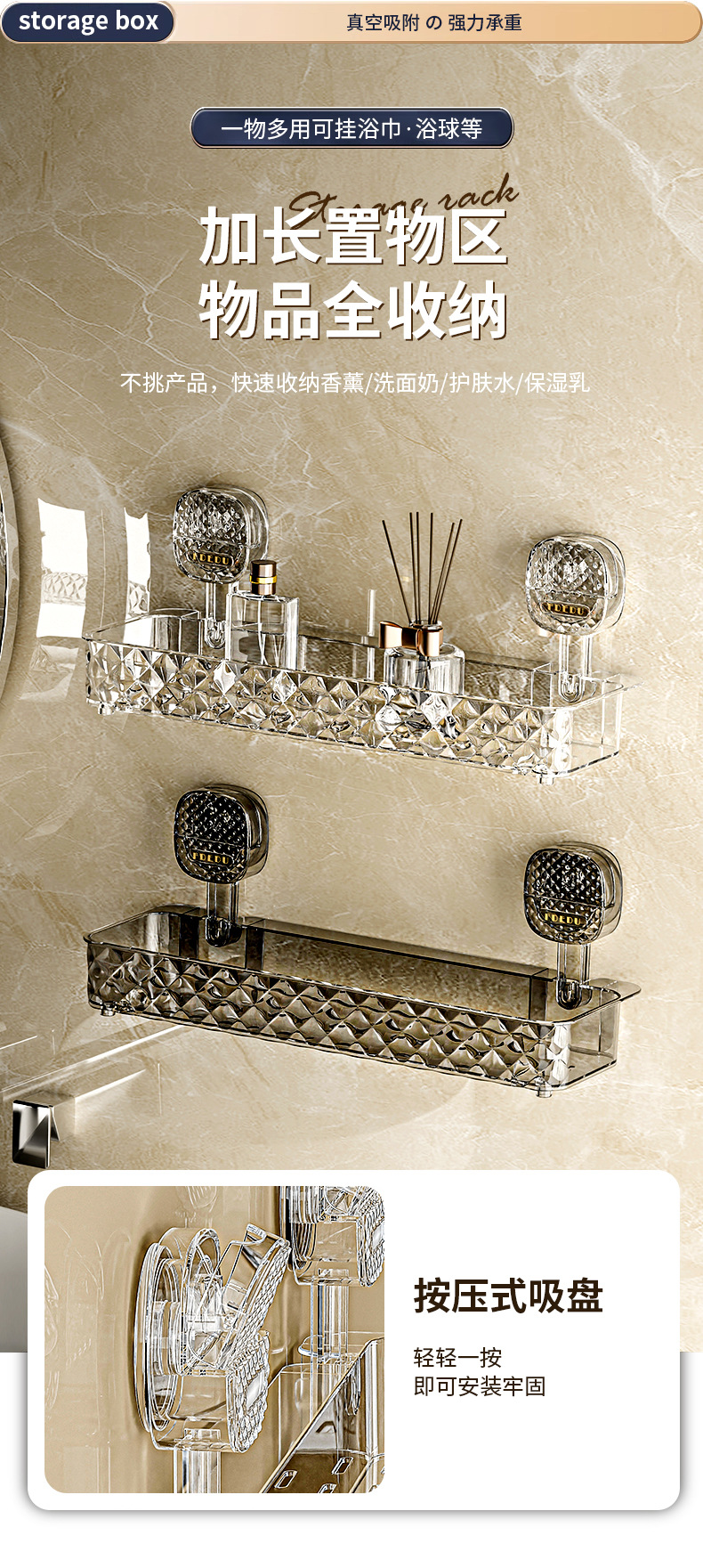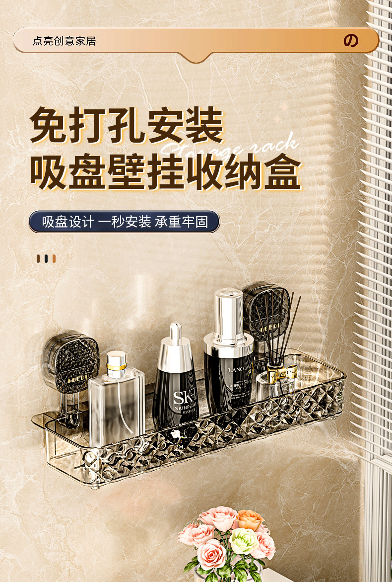 新款免钉浴室置物架吸盘卫生间置架物免钉免打孔吸盘置物架收纳跨