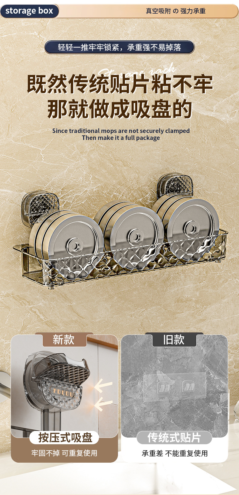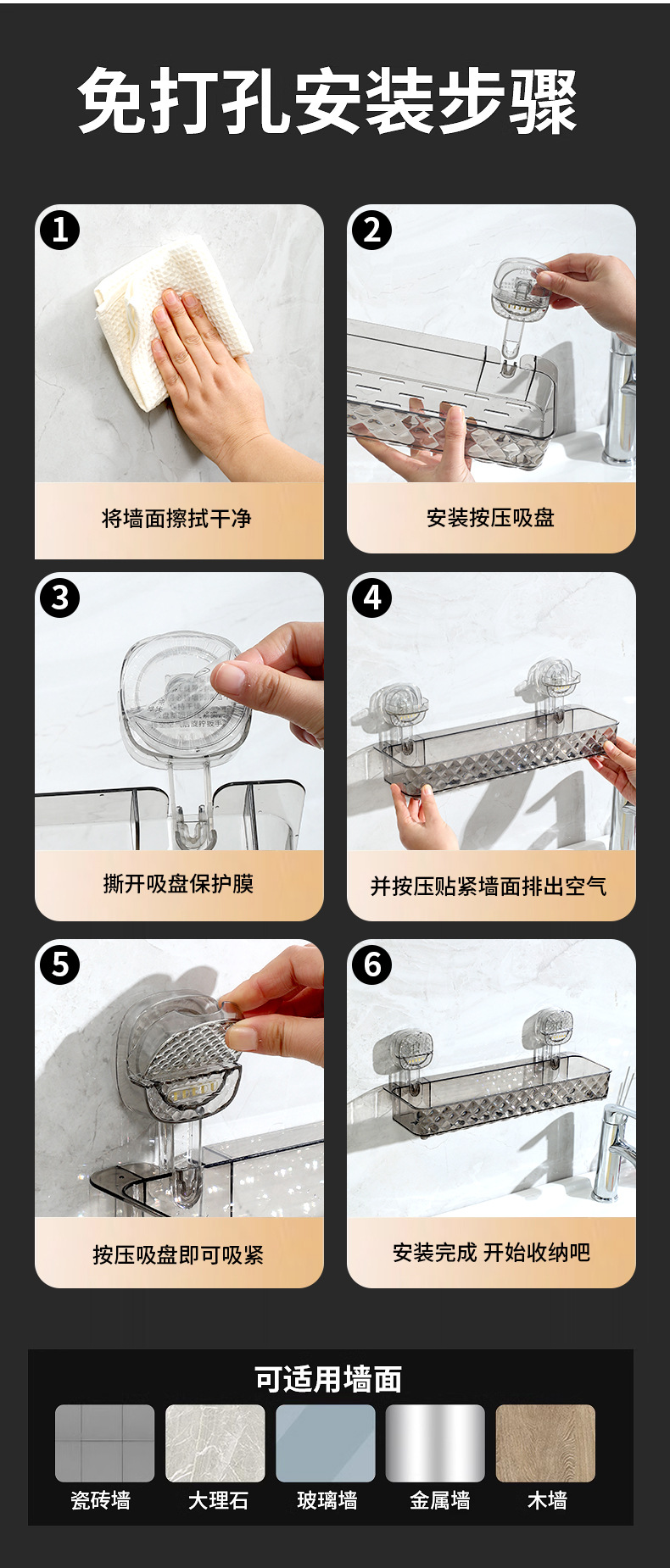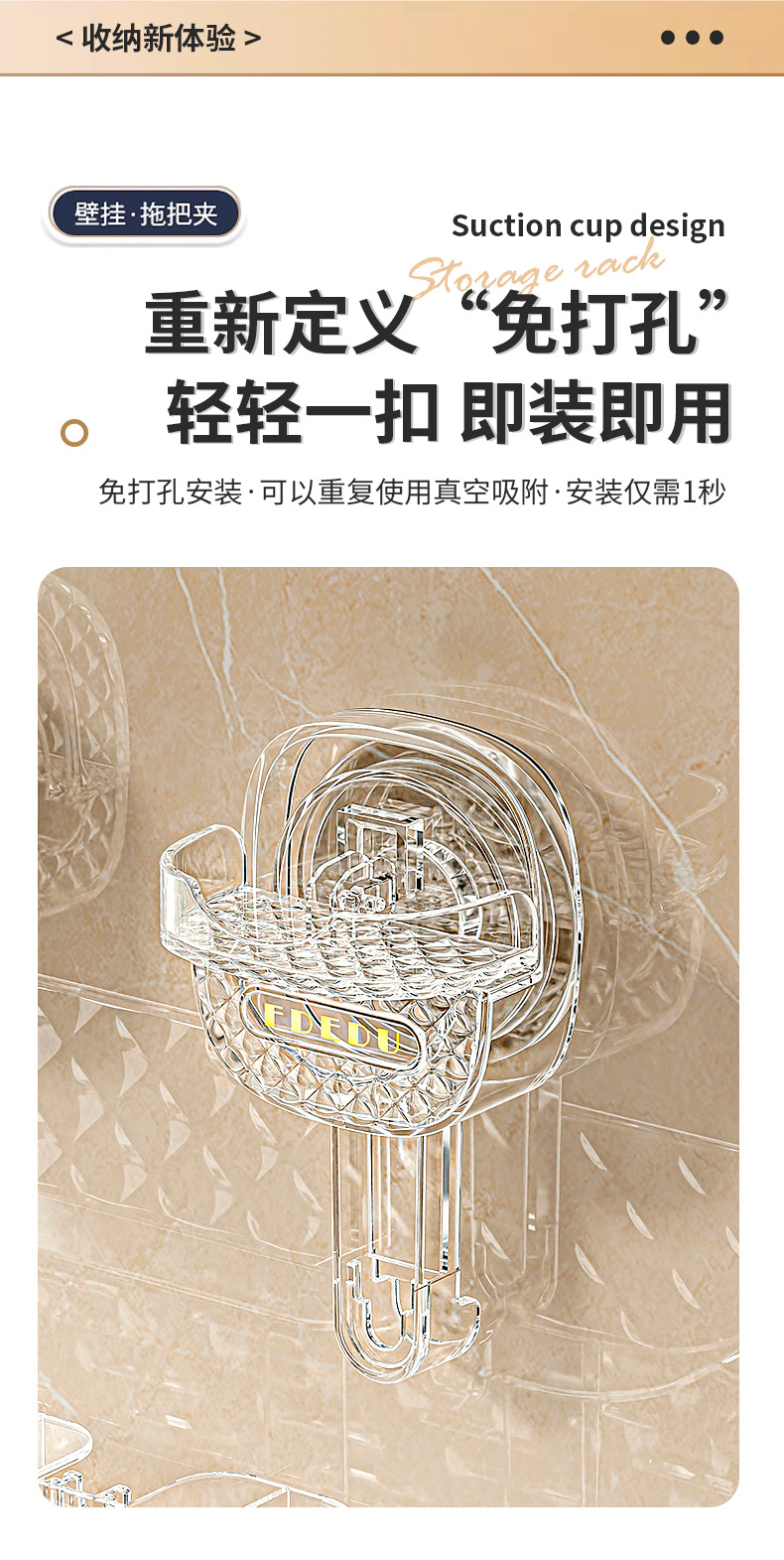 新款免钉浴室置物架吸盘卫生间置架物免钉免打孔吸盘置物架收纳跨
