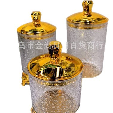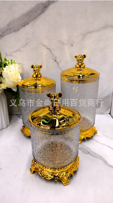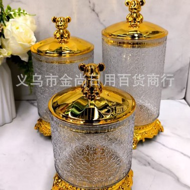 糖果小罐子零食储物盒塑料透明小熊盖圆盖砖石盖密封罐带托台